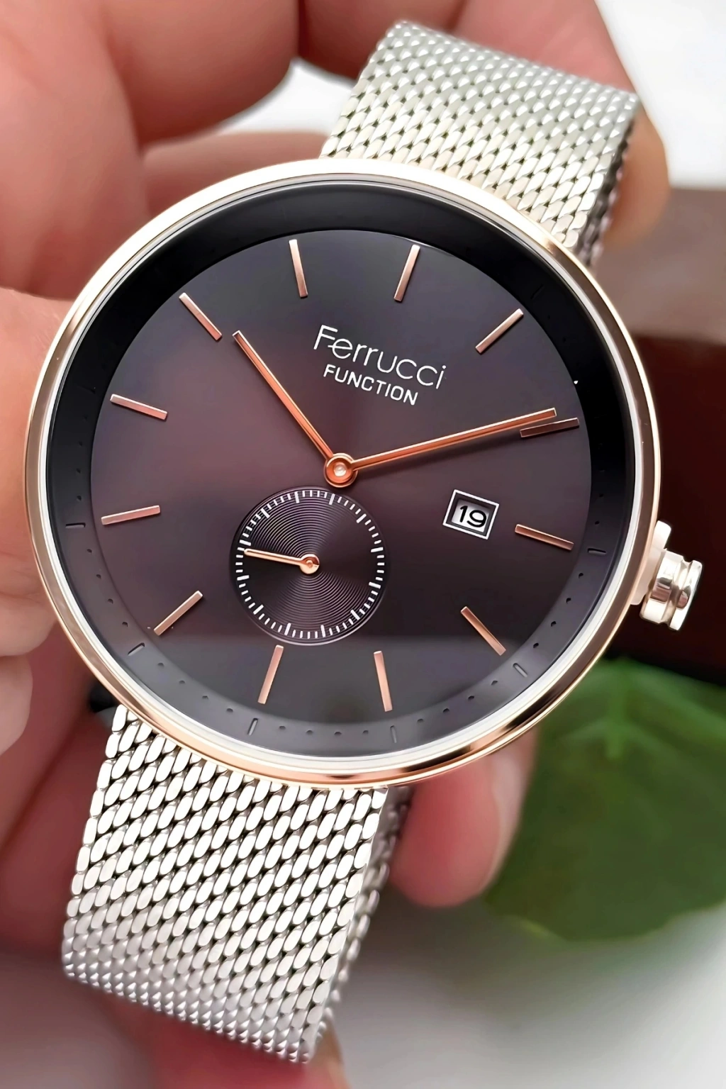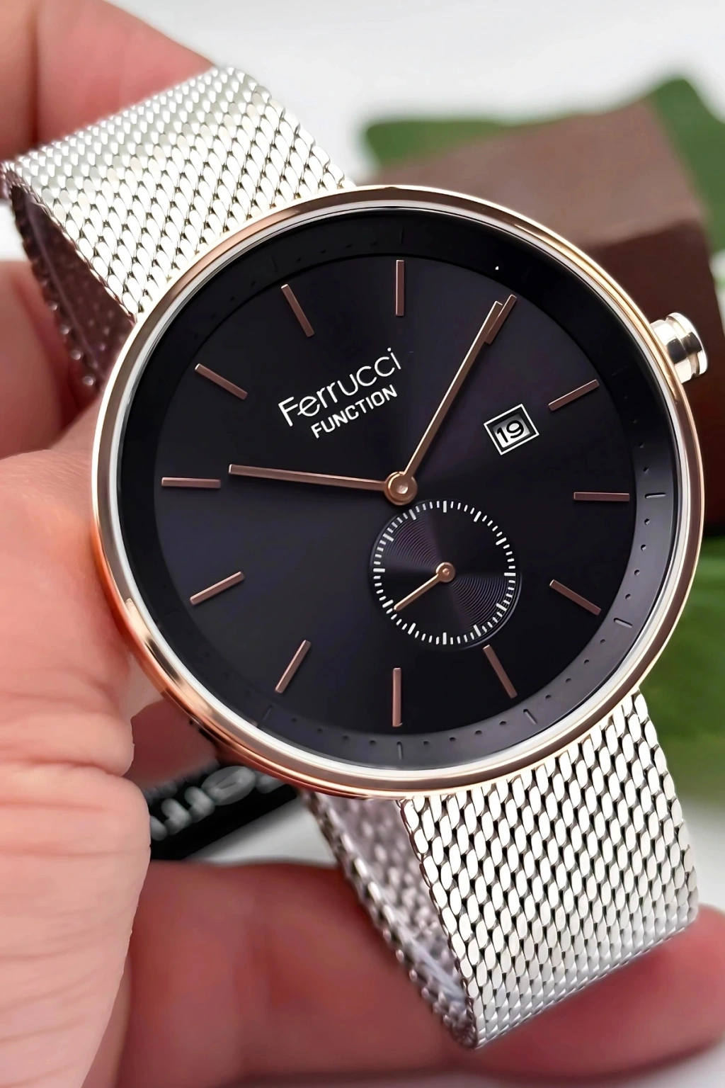 Şıklığı, fonksiyonelliği ve modern tasarımı bir arada sunan Ferrucci SDFER161 modeli, günümüz erkeğinin stilini tamamlayan özel bir aksesuardır. Bu model, hem günlük kullanımda hem de özel davetlerde zarif duruşuyla öne çıkar. Takvim özellikli yapısıyla yalnızca zamanı değil, günü de organize etmenize yardımcı olur.