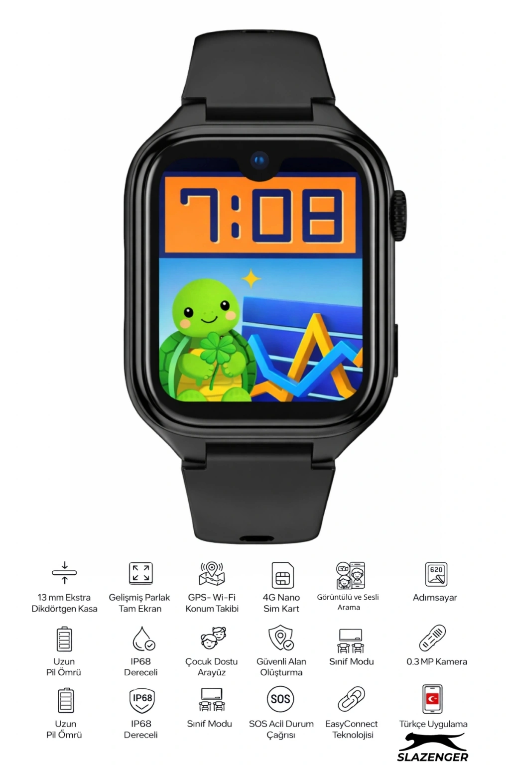Çocuğunuzun güvenliğini ve iletişimini ön planda tutan Slazenger 4G Akıllı Çocuk Saati, modern tasarımı ve güçlü teknik özellikleriyle ebeveynlerin gönül rahatlığıyla tercih edebileceği akıllı bir çözümdür. Canlı pembe rengi, çocuk dostu arayüzü ve dayanıklı yapısı sayesinde hem eğlenceli hem de güvenlidir.