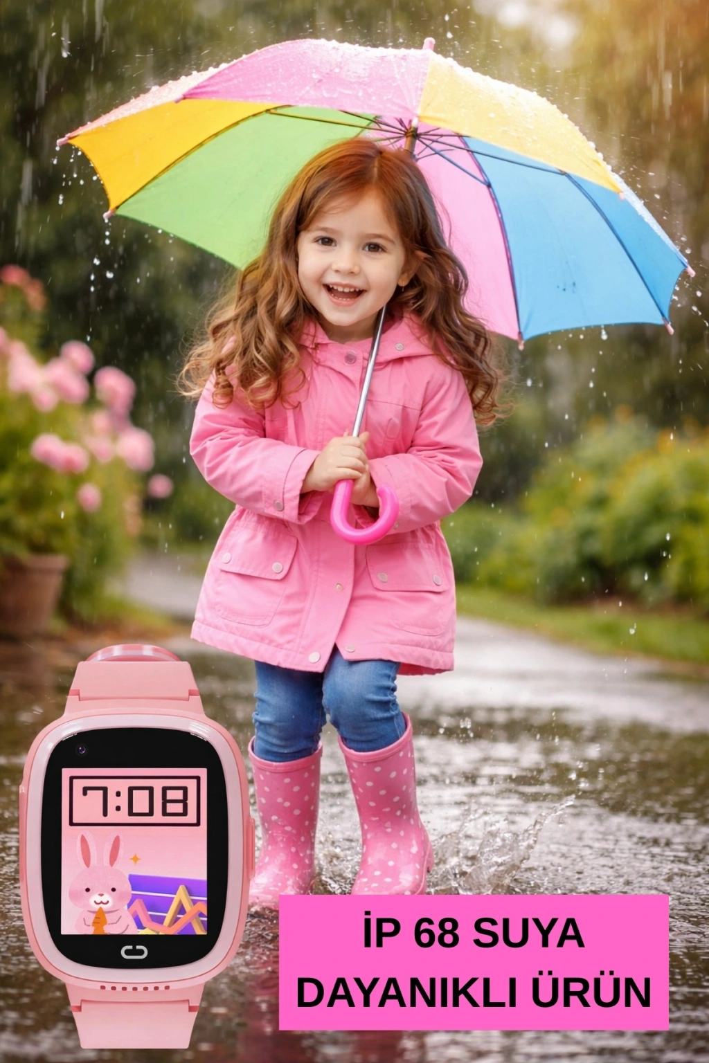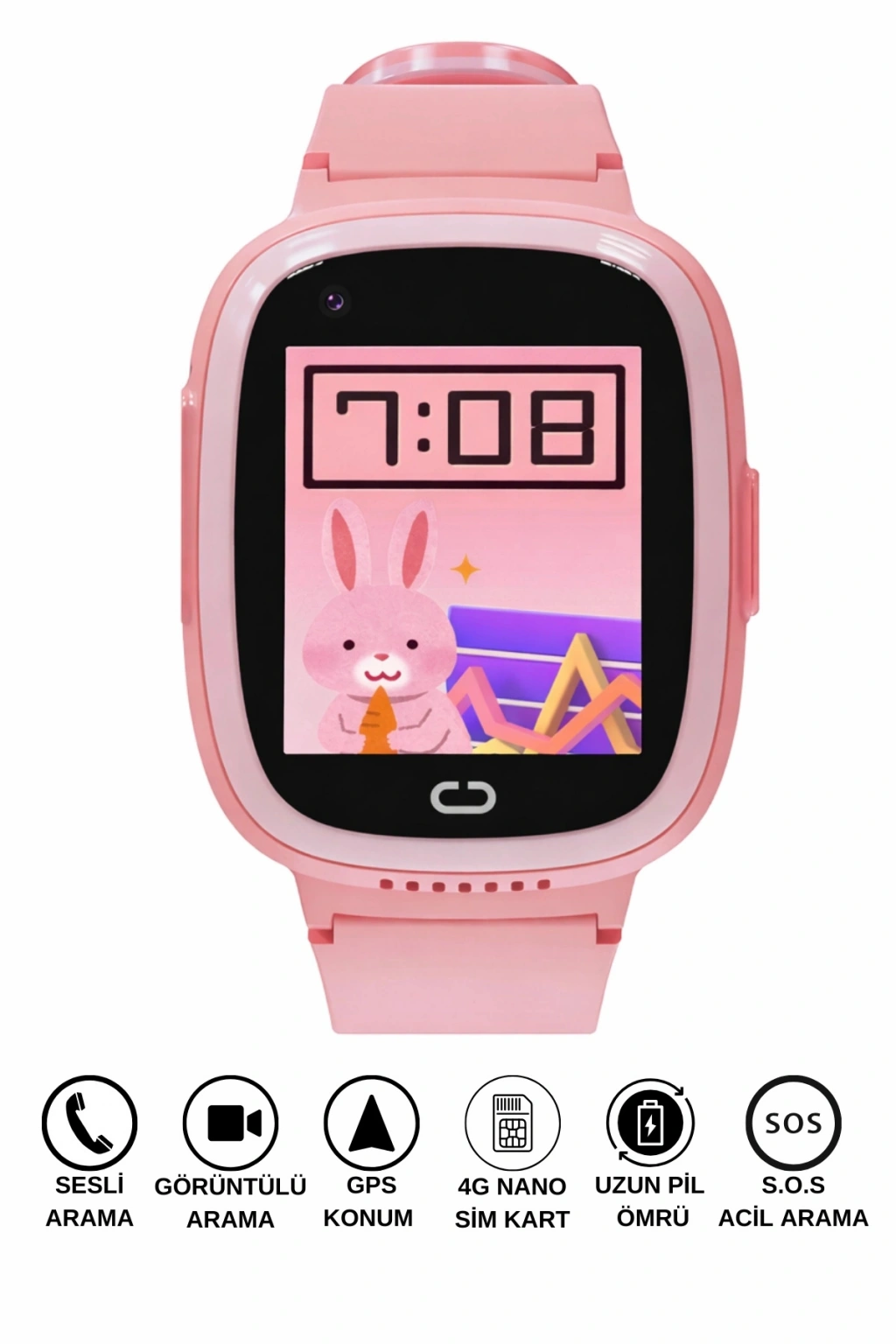 Akıllı Çocuk Saati Sesli ve Görüntülü Görüşme İP68, Sim Kart Özellikli Pembe sdyou001
