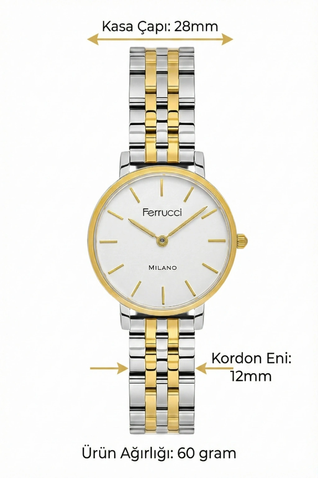 • Ferrucci Milano Kadın Kol Saati – 28 mm Çift Renk Çelik Kordon | Zarif ve Zamansız Tasarım