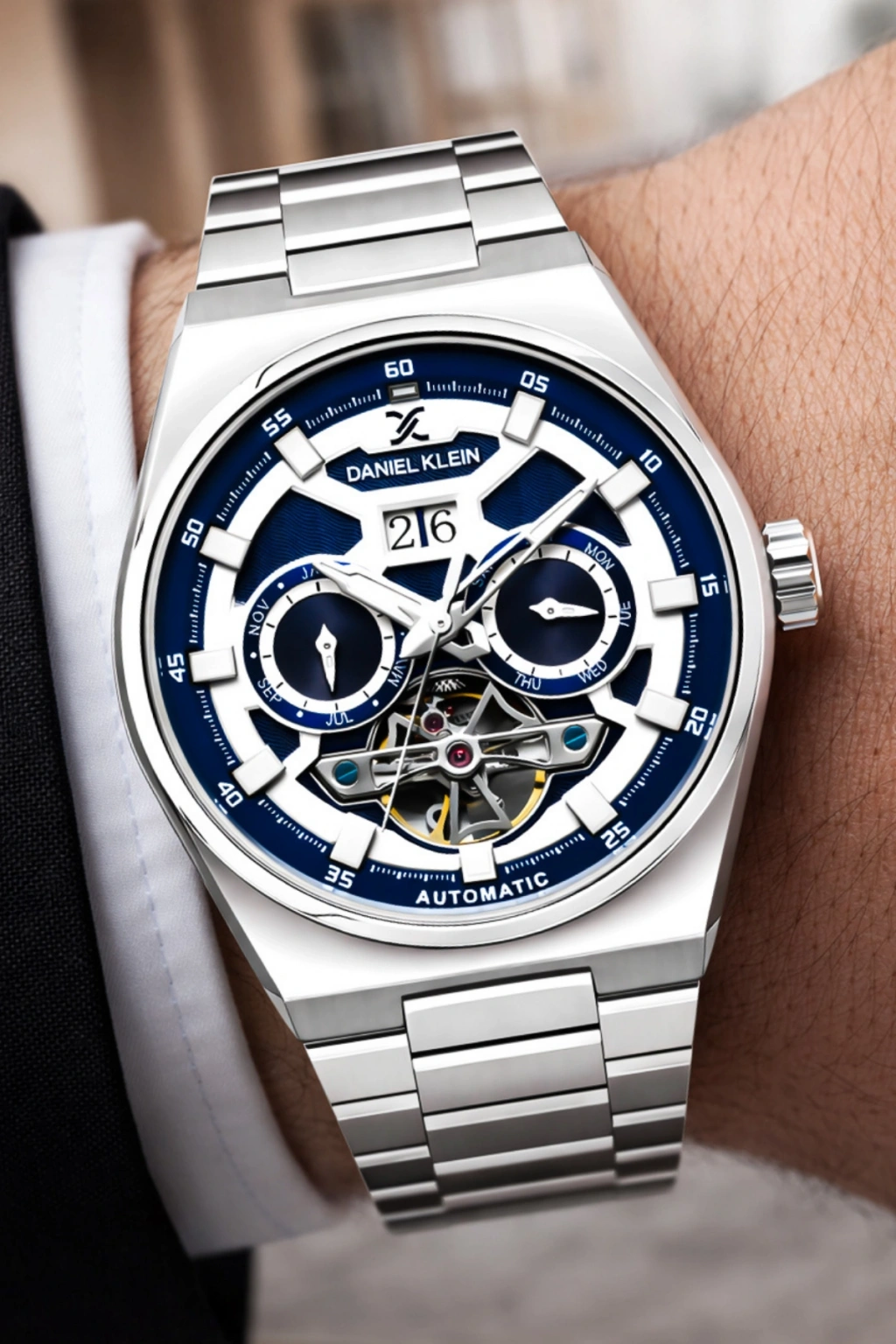 Bu Daniel Klein otomatik saat, paslanmaz çelik kordonun sağlam duruşu ile mekanik skeleton mekanizmanın estetiğini buluşturur. Kurma gerektirmeyen yapısı sayesinde kullanıcı dostudur. Hem günlük kombinlerinizle hem de takım elbiseyle kusursuz uyum sağlar.