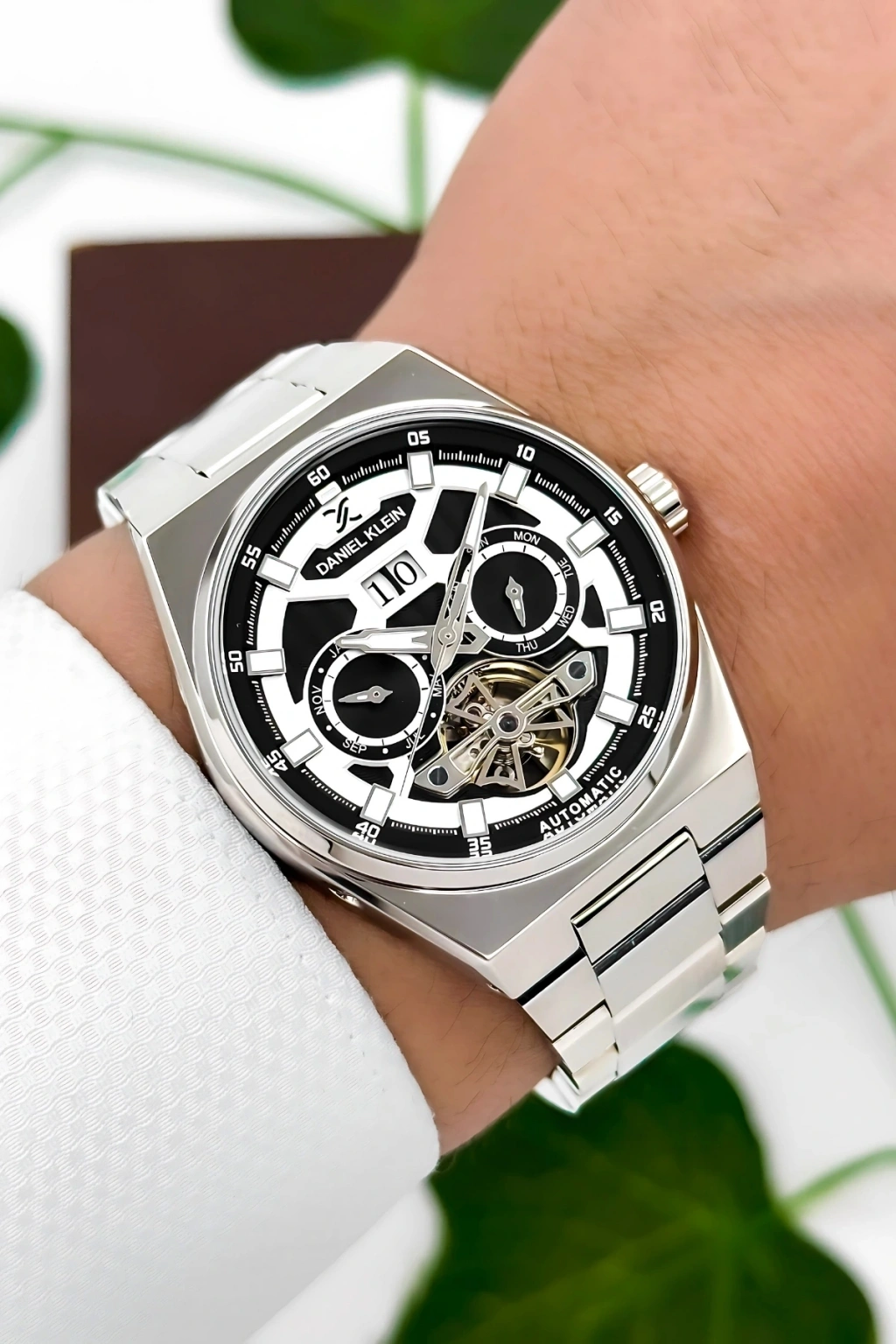 Daniel Klein Çelik Kordon Çelik Kasa Otomatik Mekanizma Erkek Kol Saati Gümüş-Siyah-Beyaz sddk105