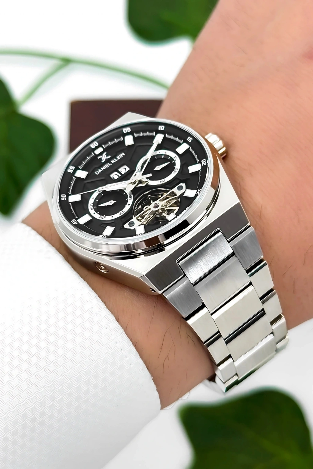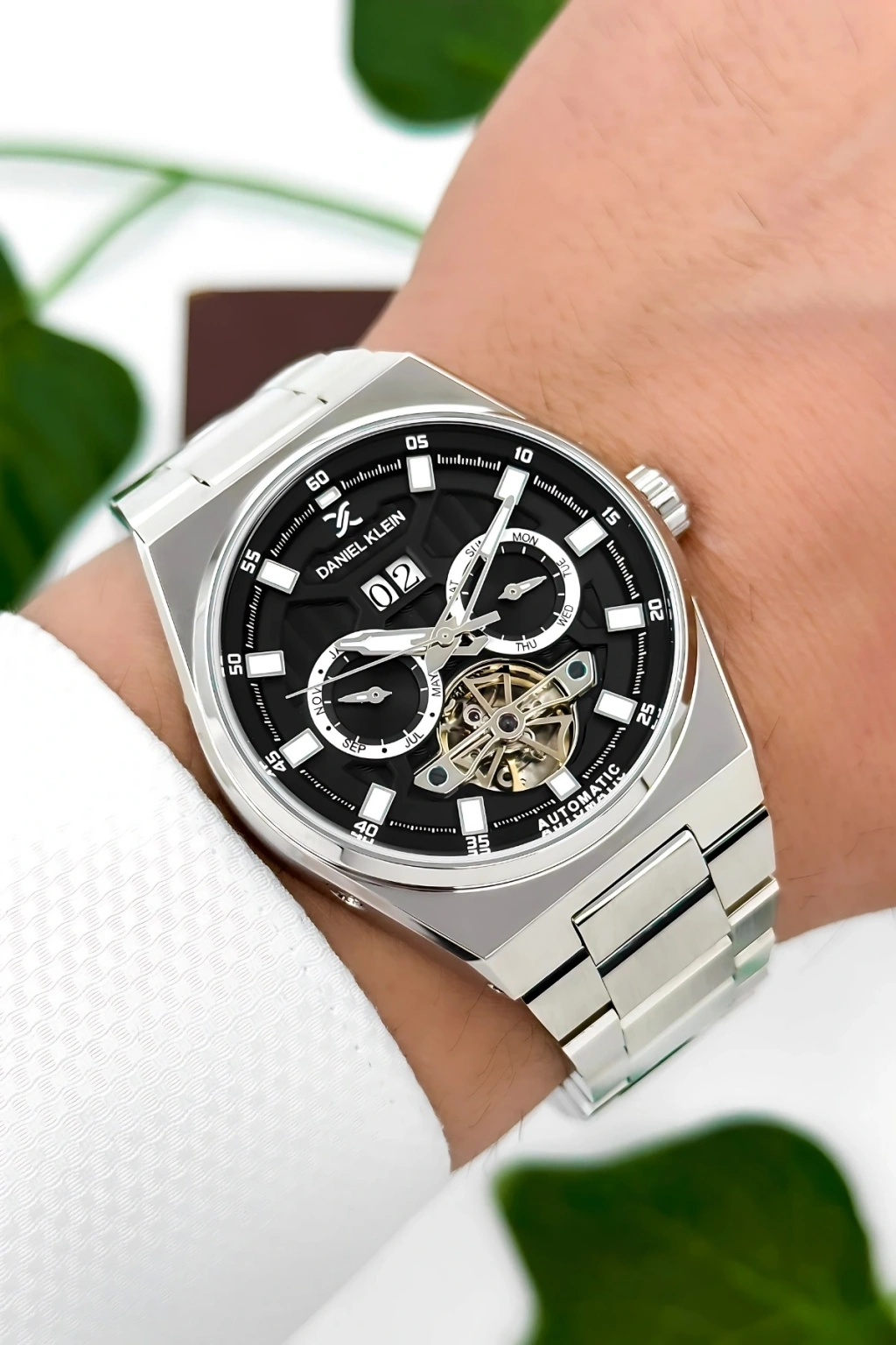 Daniel Klein Çelik Kordon Çelik Kasa Otomatik Mekanizma Erkek Kol Saati Gümüş-Siyah sddk105