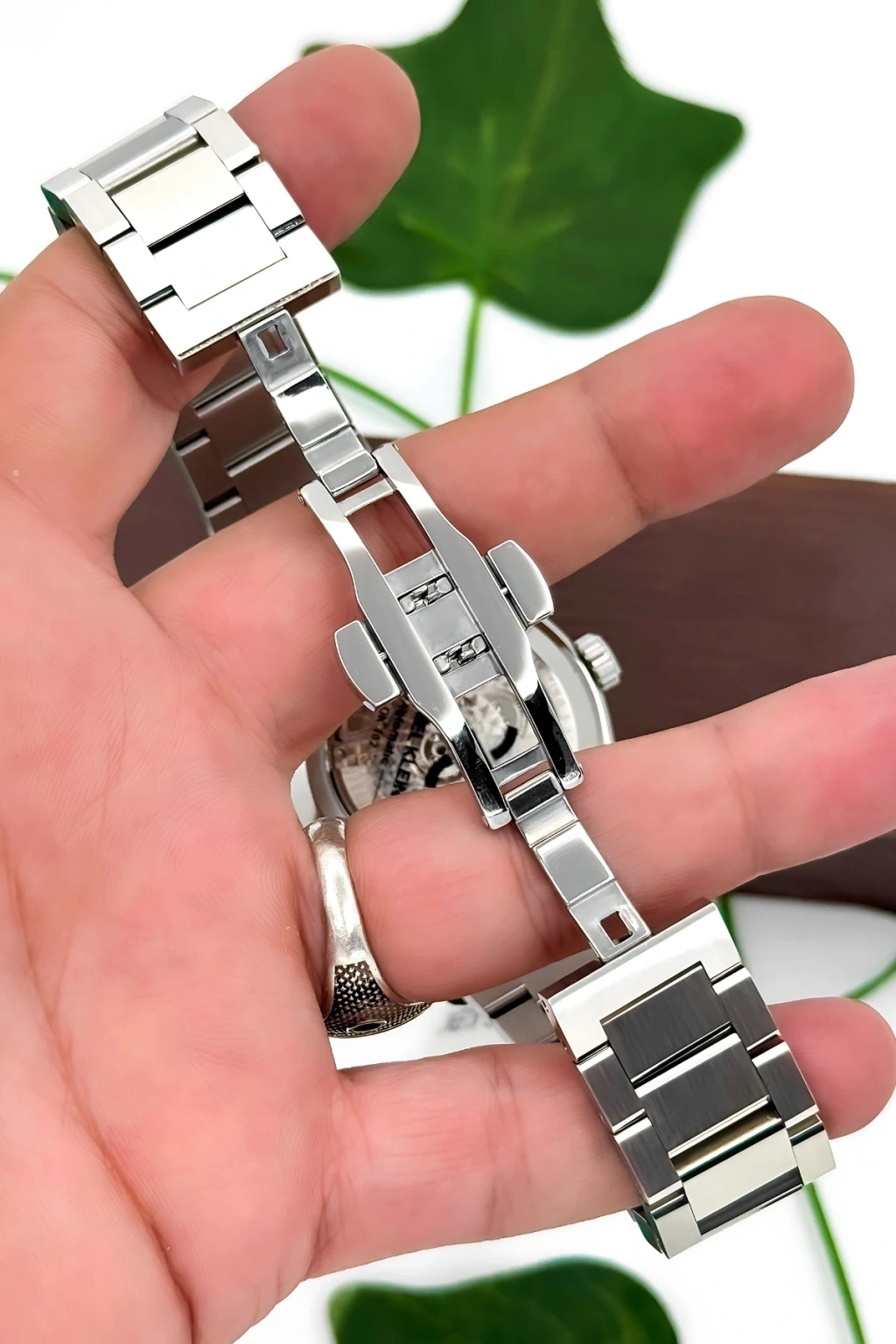 Skeleton Kadran: Mekanizmanın işleyişini gösteren şeffaf ve dikkat çekici tasarım.