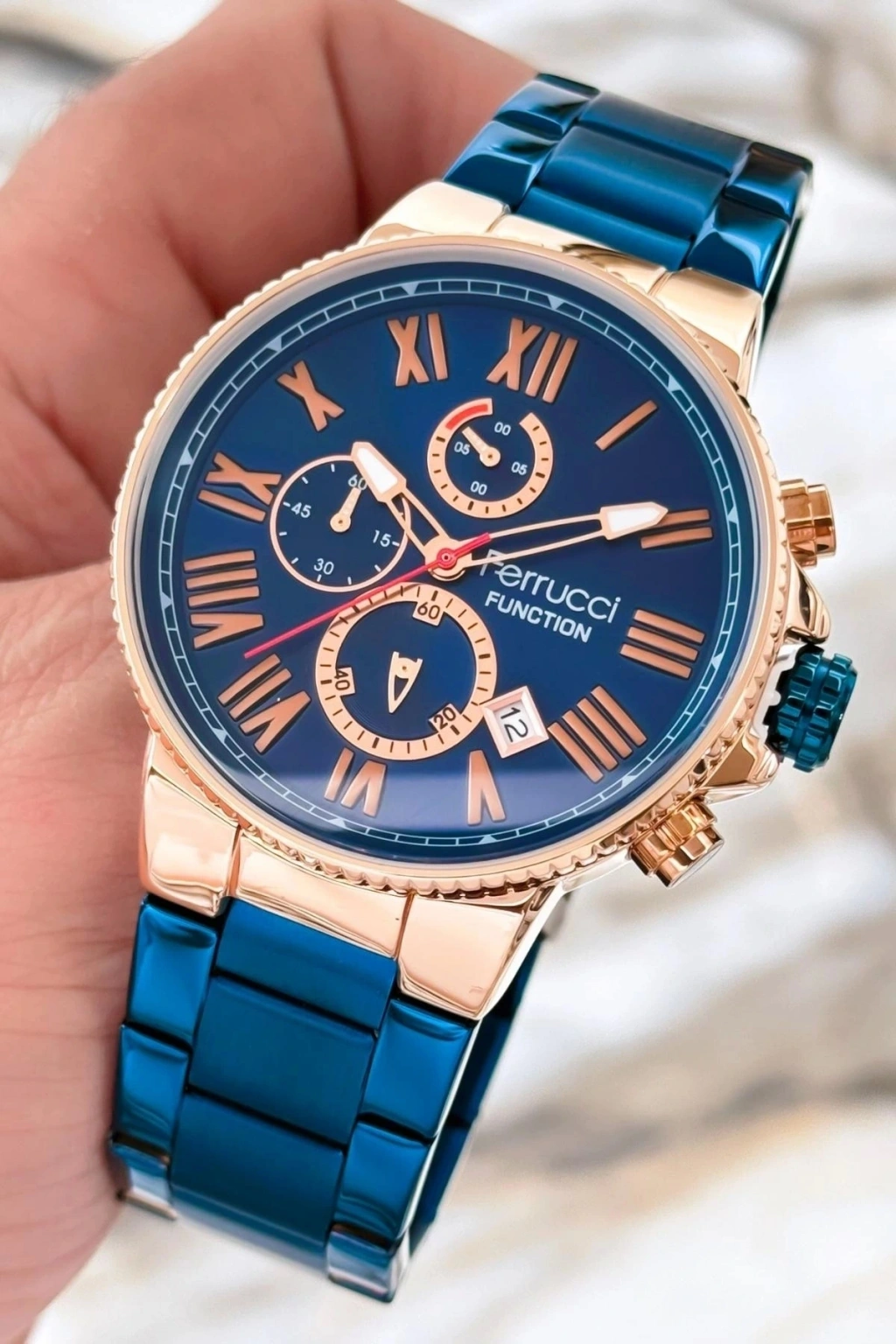 Ferrucci Marka Çelik Kordon Tüm Fonksiyonlar Aktif Erkek Kol Saati; Ferrucci marka çelik kordon tüm fonksiyonlar aktif erkek kol saati, şıklığı ve işlevselliği bir araya getiren birinci sınıf bir aksesuardır. Bu saat, kusursuz bir tasarıma sahip olan 44mm çelik kasası ve çelik kordonuyla öne çıkar. Dayanıklı yapısı ve çekici görünümüyle dikkatleri üzerinize çekmek için ideal bir seçenektir. Ayrıca, 3 atm suya dayanıklılık özelliğiyle, günlük aktivitelerinizde rahatlıkla kullanabilirsiniz.; Bu özel saat, sadece zamanı göstermekle kalmaz, aynı zamanda bir dizi fonksiyonu da aktif olarak sunar. Tarih göstergesi ile günlük takvim ihtiyaçlarınızı kolaylıkla karşılayabilirsiniz. sizi önemli randevularınız veya etkinlikleriniz hakkında bilgilendirirken, dünya saati özelliği de farklı zaman dilimlerindeki saatleri takip etmenize yardımcı olur. Bu şekilde, pratik ve işlevsel bir deneyim sunar.; Ferrucci marka çelik kordon tüm fonksiyonlar aktif erkek kol saati, yüksek kalite standartlarına uygun olarak üretilmiştir. Saat, dayanıklı çelik kasa ve çelik kordon ile uzun ömürlü bir kullanım sunar. Aynı zamanda, çelik malzeme kolayca temizlenir ve çizilmelere karşı dirençlidir. Bu sayede saat, uzun süre boyunca günlük kullanıma dayanıklıdır.; Ferrucci marka çelik kordon tüm fonksiyonlar aktif erkek kol saati, orijinal Ferrucci marka bir üründür ve 2 yıl garanti kapsamındadır. Bu garanti, ürününüzde herhangi bir imalat hatası veya işlevsellik sorunu olması durumunda size güvence sağlar.; Tarzınızı yansıtmak ve her anınızda şıklığı hissetmek için Ferrucci marka çelik kordon tüm fonksiyonlar aktif erkek kol saati mükemmel bir seçimdir. Güvenilirlik, işlevsellik ve şıklık beklentilerinizi karşılamak için tasarlanmıştır.;