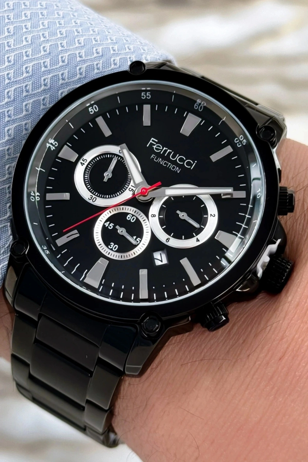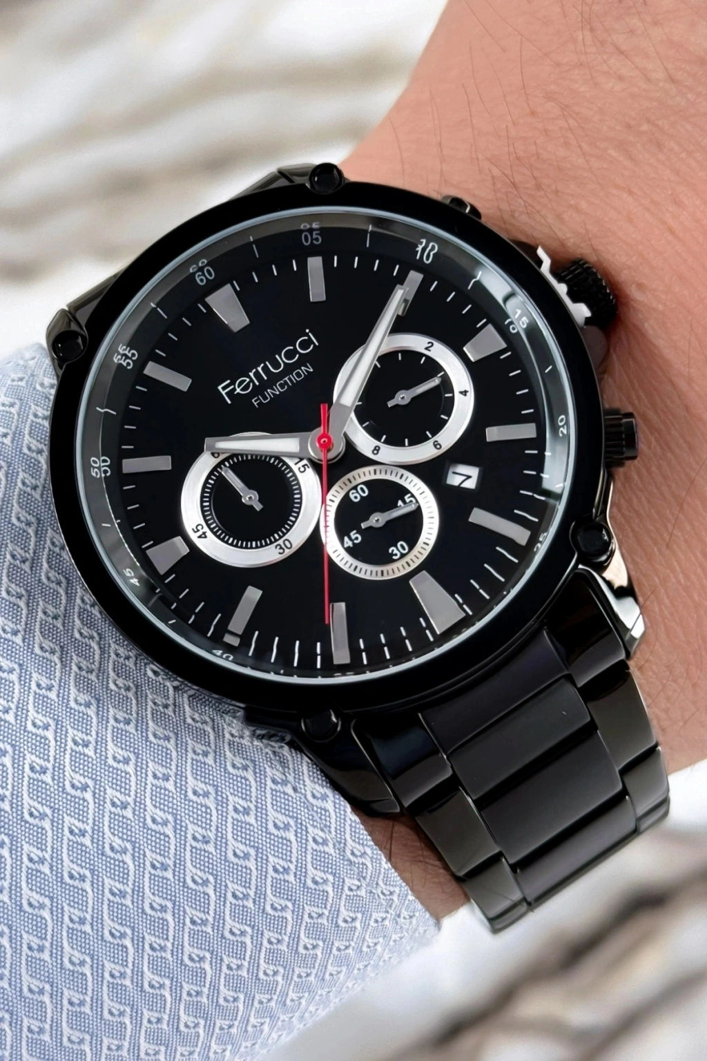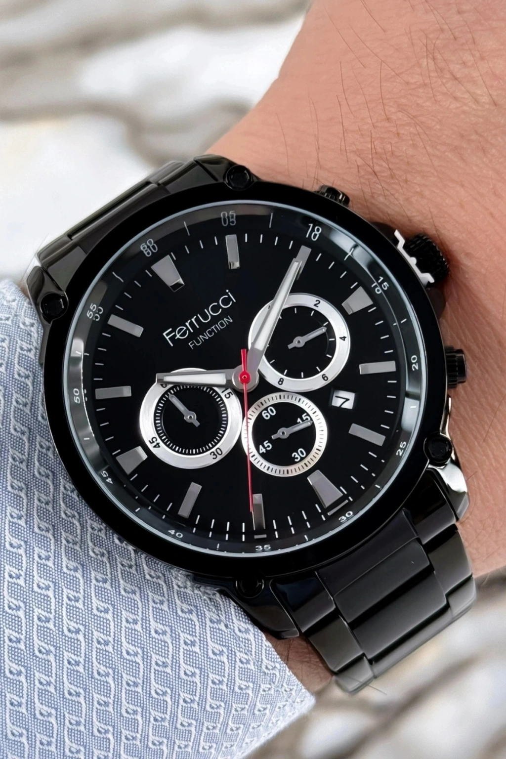 Ferrucci Marka Çelik Kordon Tüm Fonksiyonlar Aktif Erkek Kol Saati; Ferrucci marka çelik kordon tüm fonksiyonlar aktif erkek kol saati, şıklığı ve işlevselliği bir araya getiren birinci sınıf bir aksesuardır. Bu saat, kusursuz bir tasarıma sahip olan 44mm çelik kasası ve çelik kordonuyla öne çıkar. Dayanıklı yapısı ve çekici görünümüyle dikkatleri üzerinize çekmek için ideal bir seçenektir. Ayrıca, 3 atm suya dayanıklılık özelliğiyle, günlük aktivitelerinizde rahatlıkla kullanabilirsiniz.; Bu özel saat, sadece zamanı göstermekle kalmaz, aynı zamanda bir dizi fonksiyonu da aktif olarak sunar. Tarih göstergesi ile günlük takvim ihtiyaçlarınızı kolaylıkla karşılayabilirsiniz. sizi önemli randevularınız veya etkinlikleriniz hakkında bilgilendirirken, dünya saati özelliği de farklı zaman dilimlerindeki saatleri takip etmenize yardımcı olur. Bu şekilde, pratik ve işlevsel bir deneyim sunar.; Ferrucci marka çelik kordon tüm fonksiyonlar aktif erkek kol saati, yüksek kalite standartlarına uygun olarak üretilmiştir. Saat, dayanıklı çelik kasa ve çelik kordon ile uzun ömürlü bir kullanım sunar. Aynı zamanda, çelik malzeme kolayca temizlenir ve çizilmelere karşı dirençlidir. Bu sayede saat, uzun süre boyunca günlük kullanıma dayanıklıdır.; Ferrucci marka çelik kordon tüm fonksiyonlar aktif erkek kol saati, orijinal Ferrucci marka bir üründür ve 2 yıl garanti kapsamındadır. Bu garanti, ürününüzde herhangi bir imalat hatası veya işlevsellik sorunu olması durumunda size güvence sağlar.; Tarzınızı yansıtmak ve her anınızda şıklığı hissetmek için Ferrucci marka çelik kordon tüm fonksiyonlar aktif erkek kol saati mükemmel bir seçimdir. Güvenilirlik, işlevsellik ve şıklık beklentilerinizi karşılamak için tasarlanmıştır.;