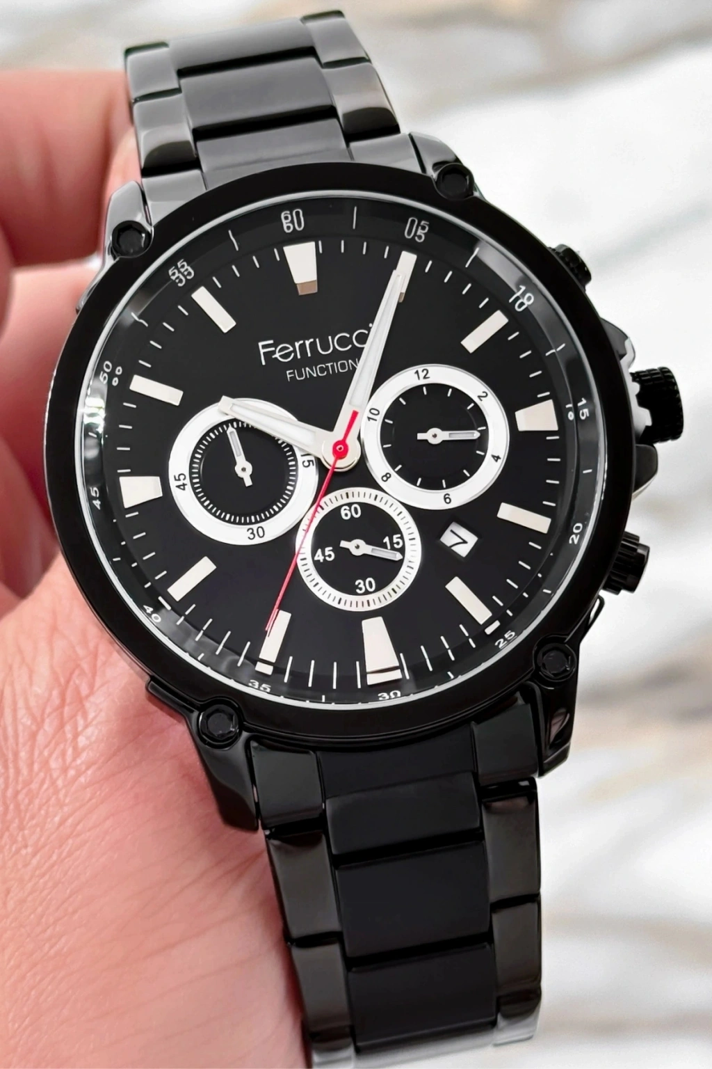 Ferrucci Marka Çelik Kordon Tüm Fonksiyonlar Aktif Erkek Kol Saati; Ferrucci marka çelik kordon tüm fonksiyonlar aktif erkek kol saati, şıklığı ve işlevselliği bir araya getiren birinci sınıf bir aksesuardır. Bu saat, kusursuz bir tasarıma sahip olan 44mm çelik kasası ve çelik kordonuyla öne çıkar. Dayanıklı yapısı ve çekici görünümüyle dikkatleri üzerinize çekmek için ideal bir seçenektir. Ayrıca, 3 atm suya dayanıklılık özelliğiyle, günlük aktivitelerinizde rahatlıkla kullanabilirsiniz.; Bu özel saat, sadece zamanı göstermekle kalmaz, aynı zamanda bir dizi fonksiyonu da aktif olarak sunar. Tarih göstergesi ile günlük takvim ihtiyaçlarınızı kolaylıkla karşılayabilirsiniz. sizi önemli randevularınız veya etkinlikleriniz hakkında bilgilendirirken, dünya saati özelliği de farklı zaman dilimlerindeki saatleri takip etmenize yardımcı olur. Bu şekilde, pratik ve işlevsel bir deneyim sunar.; Ferrucci marka çelik kordon tüm fonksiyonlar aktif erkek kol saati, yüksek kalite standartlarına uygun olarak üretilmiştir. Saat, dayanıklı çelik kasa ve çelik kordon ile uzun ömürlü bir kullanım sunar. Aynı zamanda, çelik malzeme kolayca temizlenir ve çizilmelere karşı dirençlidir. Bu sayede saat, uzun süre boyunca günlük kullanıma dayanıklıdır.; Ferrucci marka çelik kordon tüm fonksiyonlar aktif erkek kol saati, orijinal Ferrucci marka bir üründür ve 2 yıl garanti kapsamındadır. Bu garanti, ürününüzde herhangi bir imalat hatası veya işlevsellik sorunu olması durumunda size güvence sağlar.; Tarzınızı yansıtmak ve her anınızda şıklığı hissetmek için Ferrucci marka çelik kordon tüm fonksiyonlar aktif erkek kol saati mükemmel bir seçimdir. Güvenilirlik, işlevsellik ve şıklık beklentilerinizi karşılamak için tasarlanmıştır.;