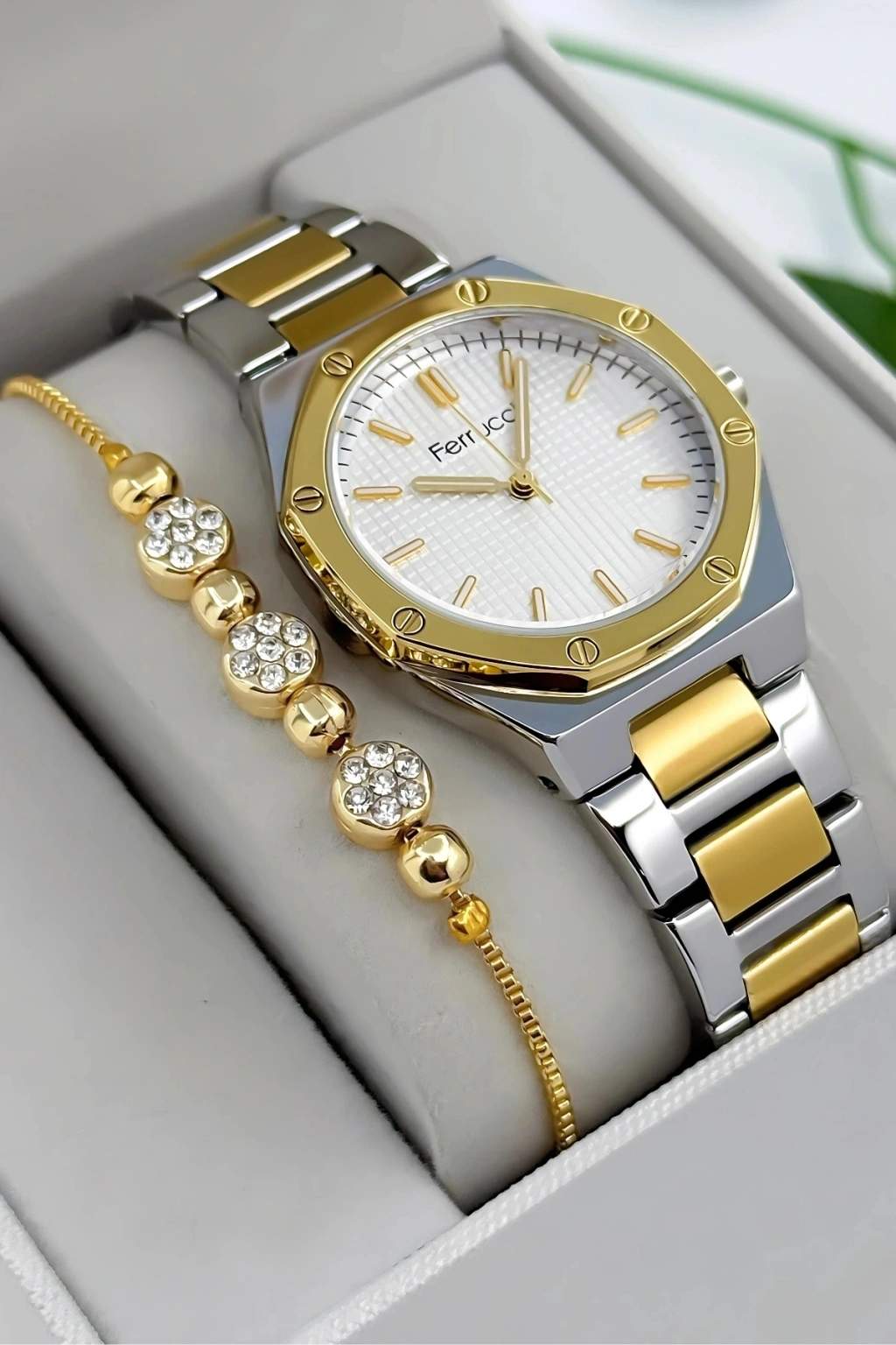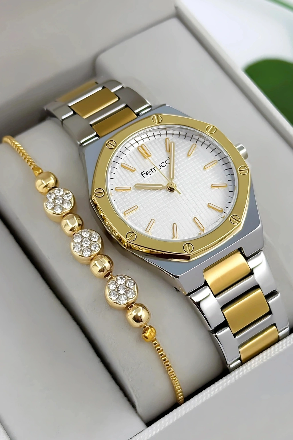 Şıklık ve İşlevsellik Bir Arada Ferrucci Kadın Kol Saati, beyaz kadranı ve çelik detayları ile zamansız bir tasarım sunar. Günlük hayatta şıklığınızı korumanıza yardımcı olurken özel günlerde kombinlerinizi tamamlayarak dikkat çeker. Minimal detayları ve kaliteli yapısı sayesinde her yaştan kadın için ideal bir tercih haline gelir.