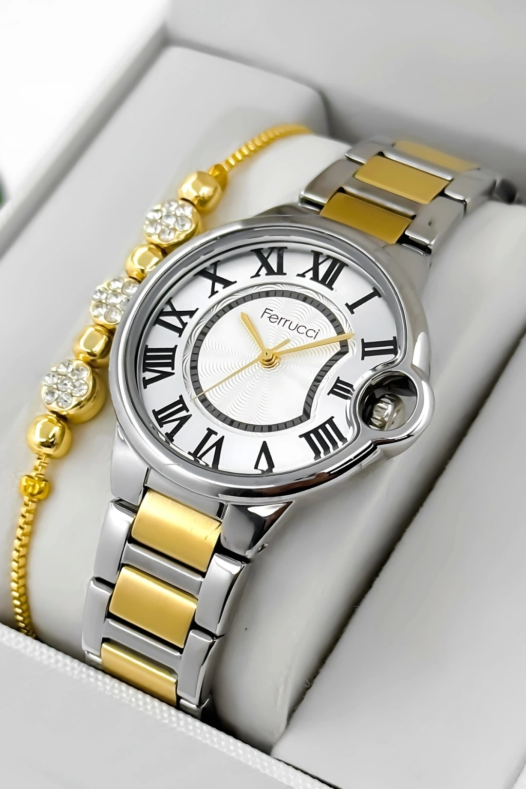Ferrucci Çelik Kordon & Kasa Kadın Kol Saati, 3atm Suya Dayanıklı Gold-gümüş Sdfer177