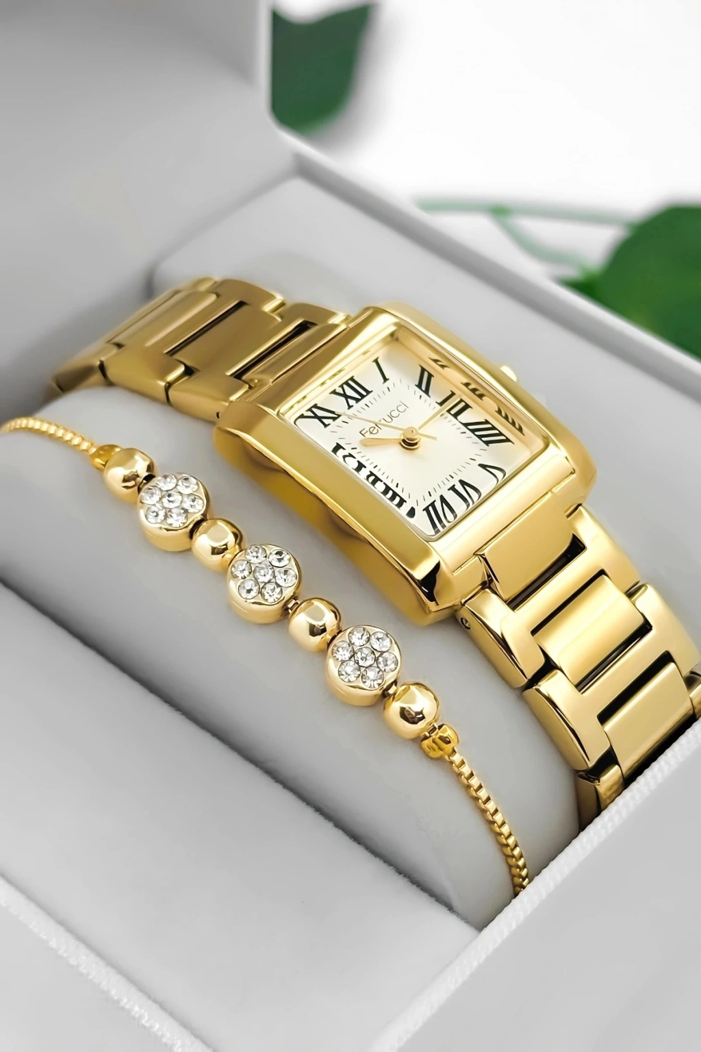 Çelik Kordon & Kasa Kadın Kol Saati, 3atm Suya Dayanıklı Gold Sdfer176