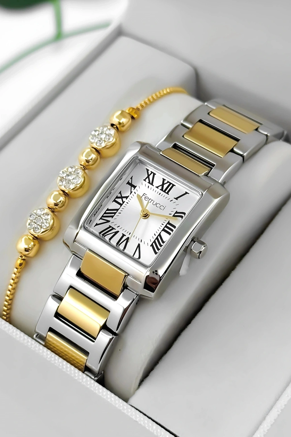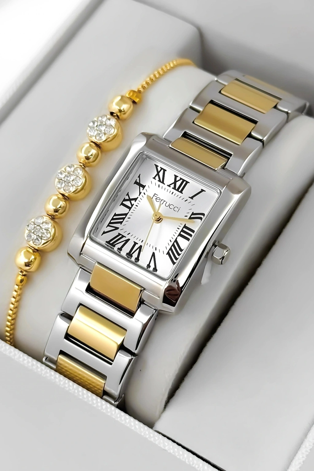 Ferrucci Kadın Kol Saati, zamansız tasarımı ve çelik dayanıklılığı ile her tarza uyum sağlayan bir aksesuar olarak öne çıkıyor. Beyaz kadranıyla minimal ve sofistike bir görünüm sunan bu model, çelik kasa ve kordonuyla hem dayanıklılığı hem de estetiği bir arada sunuyor. Modern bir tarza sahip olmak isteyen kadınlar için mükemmel bir seçimdir.