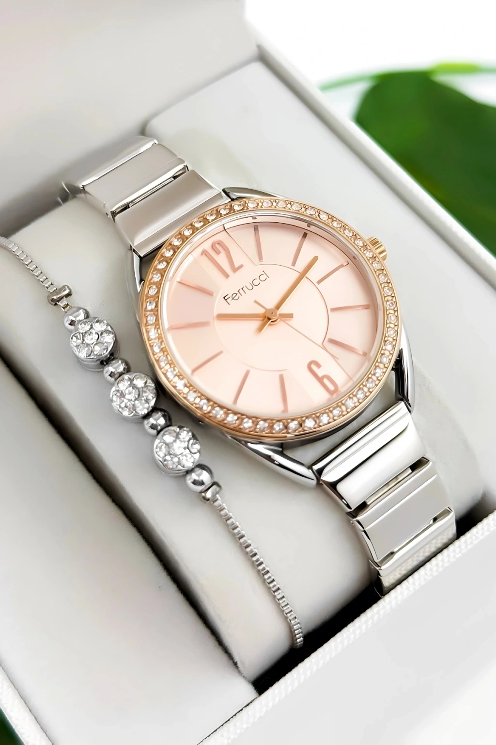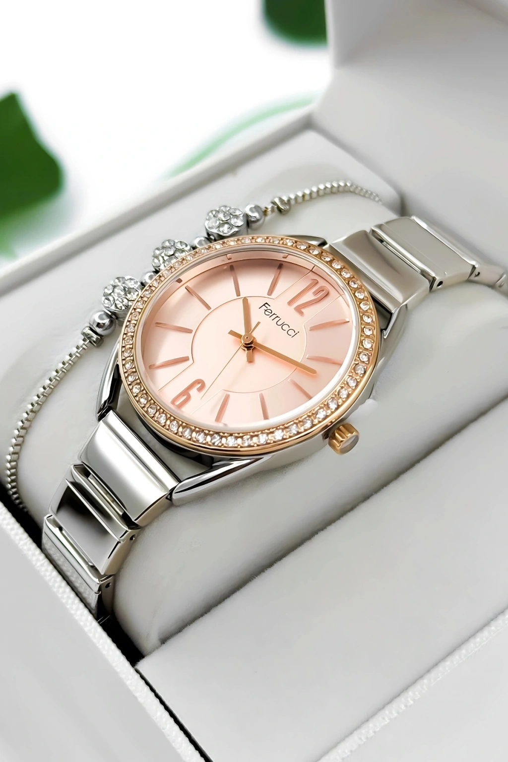 Ferrucci Çelik Kordon & Kasa Kadın Kol Saati, 3atm Suya Dayanıklı Gümüş-rose Sdfer172