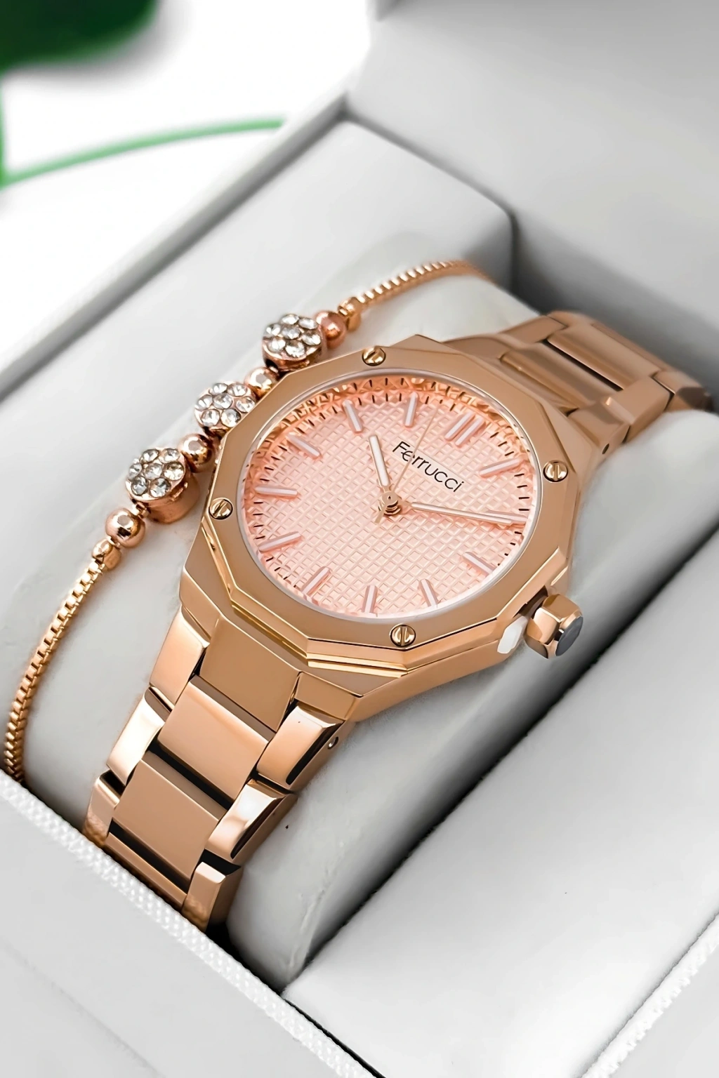 Ferrucci Çelik Kordon & Kasa Kadın Kol Saati, 3atm Suya Dayanıklı Rose Sdfer175