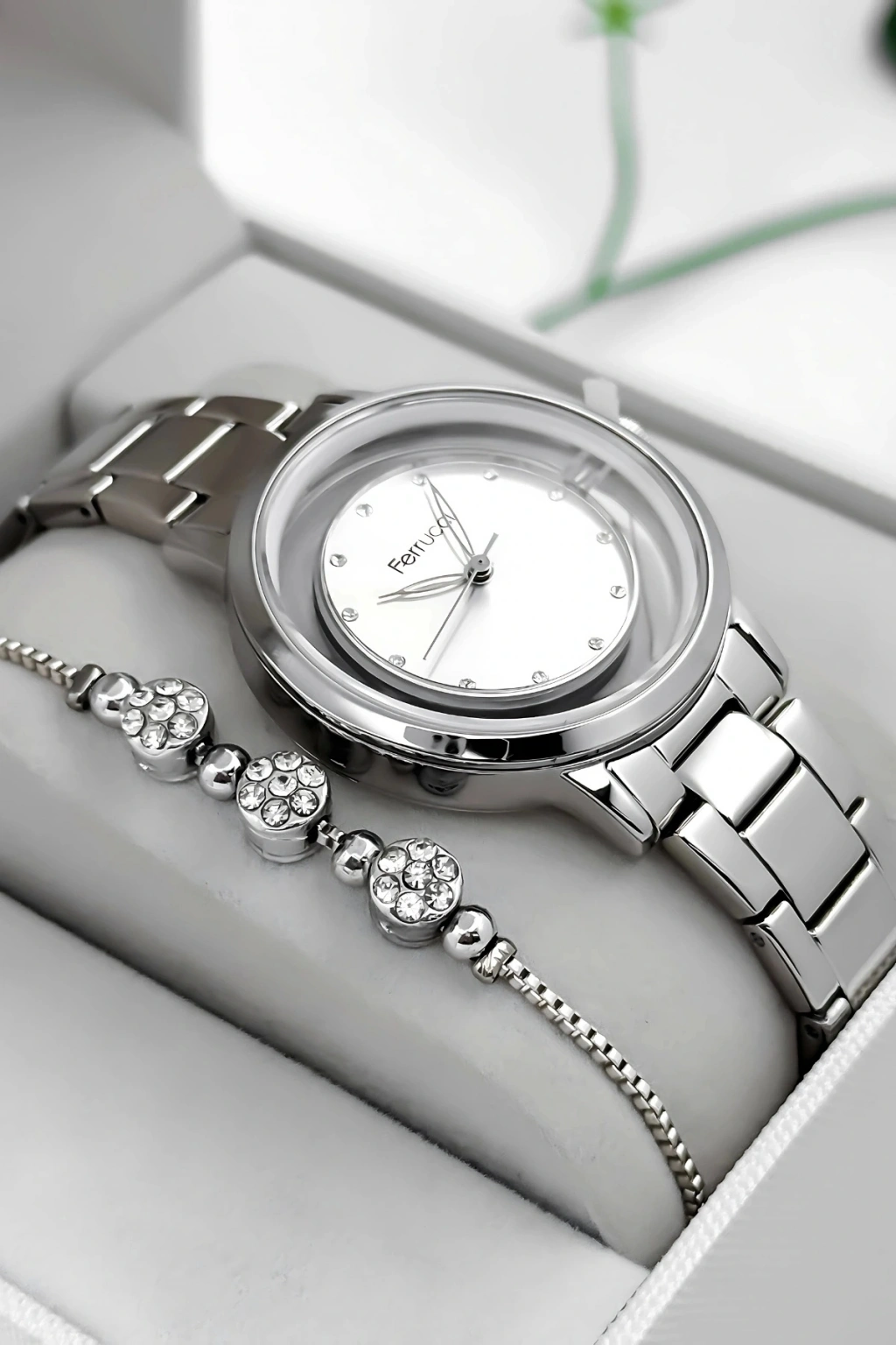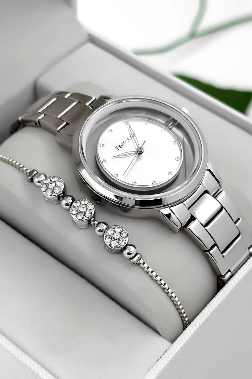Ferrucci Kadın Kol Saati, zamansız tasarımı ve çelik dayanıklılığı ile her tarza uyum sağlayan bir aksesuar olarak öne çıkıyor. Beyaz kadranıyla minimal ve sofistike bir görünüm sunan bu model, çelik kasa ve kordonuyla hem dayanıklılığı hem de estetiği bir arada sunuyor. Modern bir tarza sahip olmak isteyen kadınlar için mükemmel bir seçimdir.