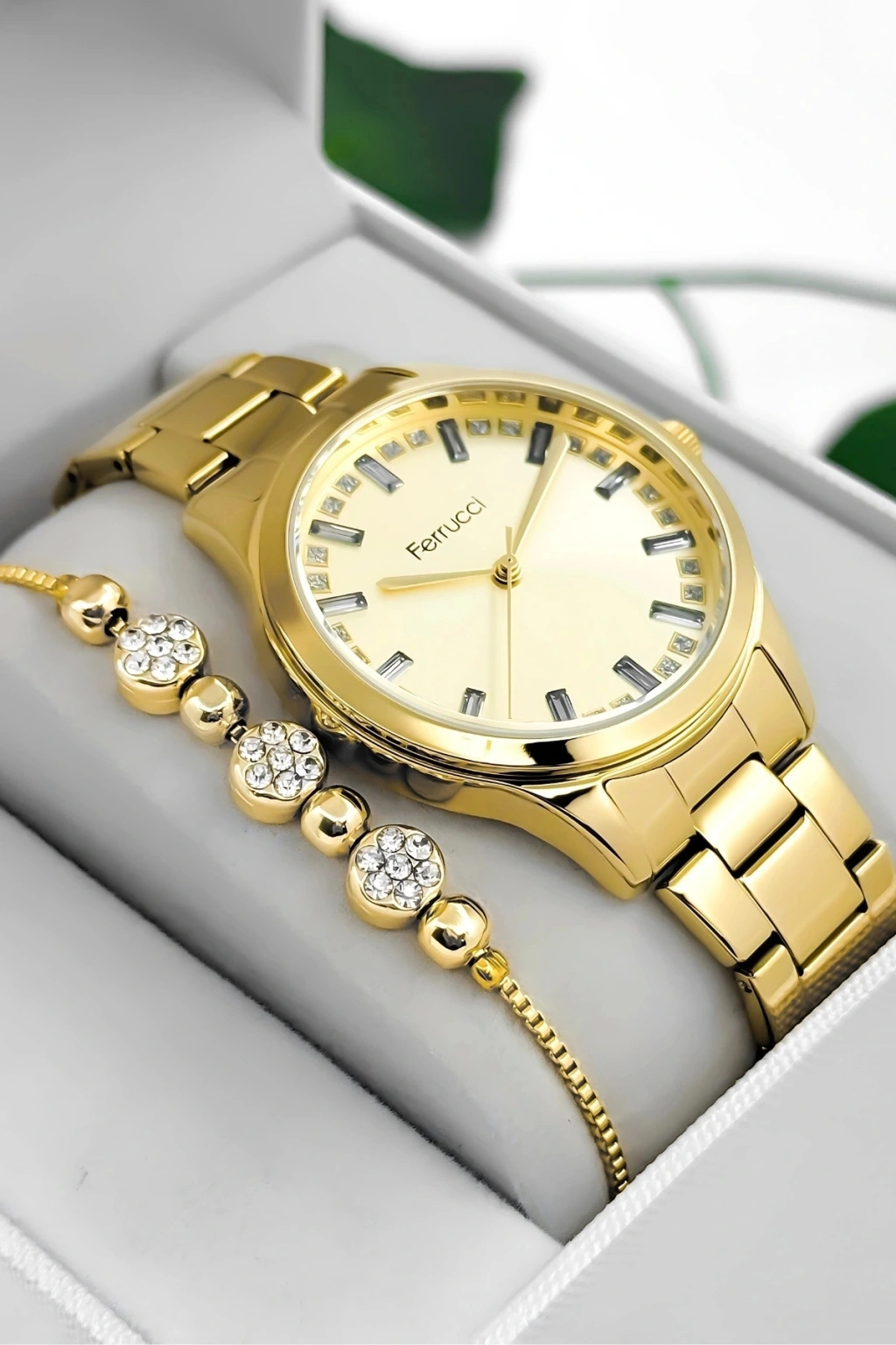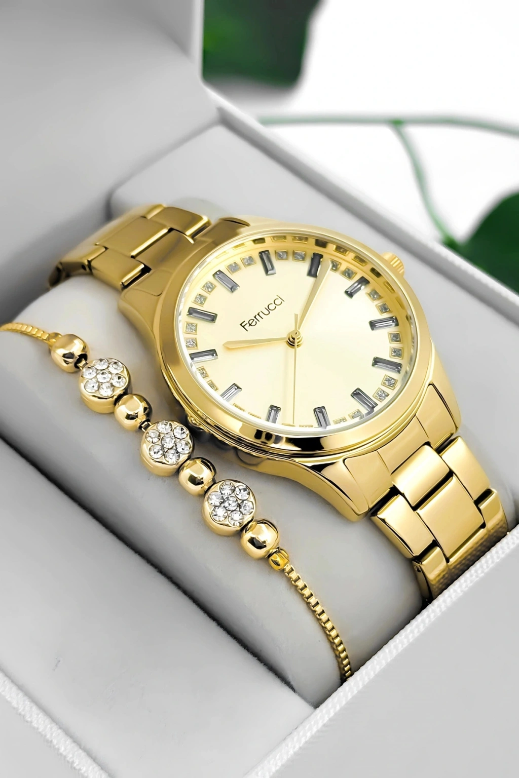 Ferrucci Kadın Kol Saati, zamansız tasarımı ve çelik dayanıklılığı ile her tarza uyum sağlayan bir aksesuar olarak öne çıkıyor. Beyaz kadranıyla minimal ve sofistike bir görünüm sunan bu model, çelik kasa ve kordonuyla hem dayanıklılığı hem de estetiği bir arada sunuyor. Modern bir tarza sahip olmak isteyen kadınlar için mükemmel bir seçimdir.