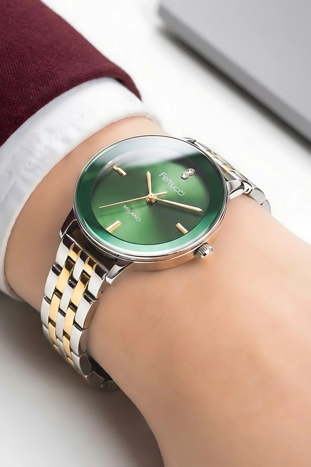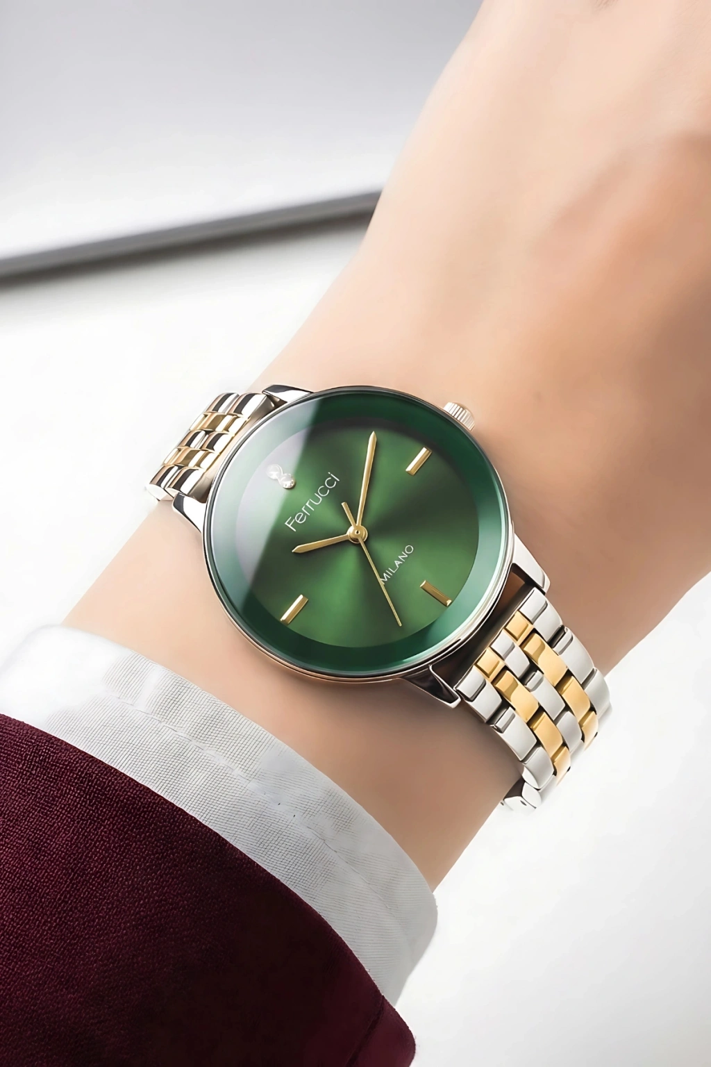 • Minimalist tasarımı sayesinde Ferrucci Milano; ofis kombinlerinden günlük şıklığa, özel davetlerden akşam yemeklerine kadar her ortamda rahatlıkla kullanılabilir. Elbise, etek, takım, gömlek ya da casual kombinlerle kusursuz uyum sağlar. Hem kendiniz için zarif bir aksesuar arıyorsanız hem de sevdiklerinize şık ve anlamlı bir hediye alternatifi düşünüyorsanız, bu model güçlü bir tercihtir.