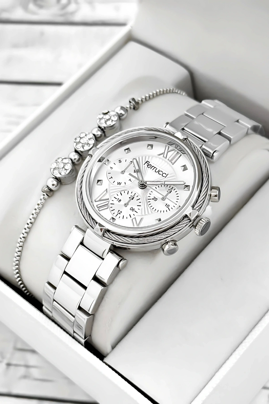 Ferrucci Çelik Kordon & Şık Tasarım, Kadın Kol Saati, 3atm Suya Dayanıklı Gümüş Sdfer171