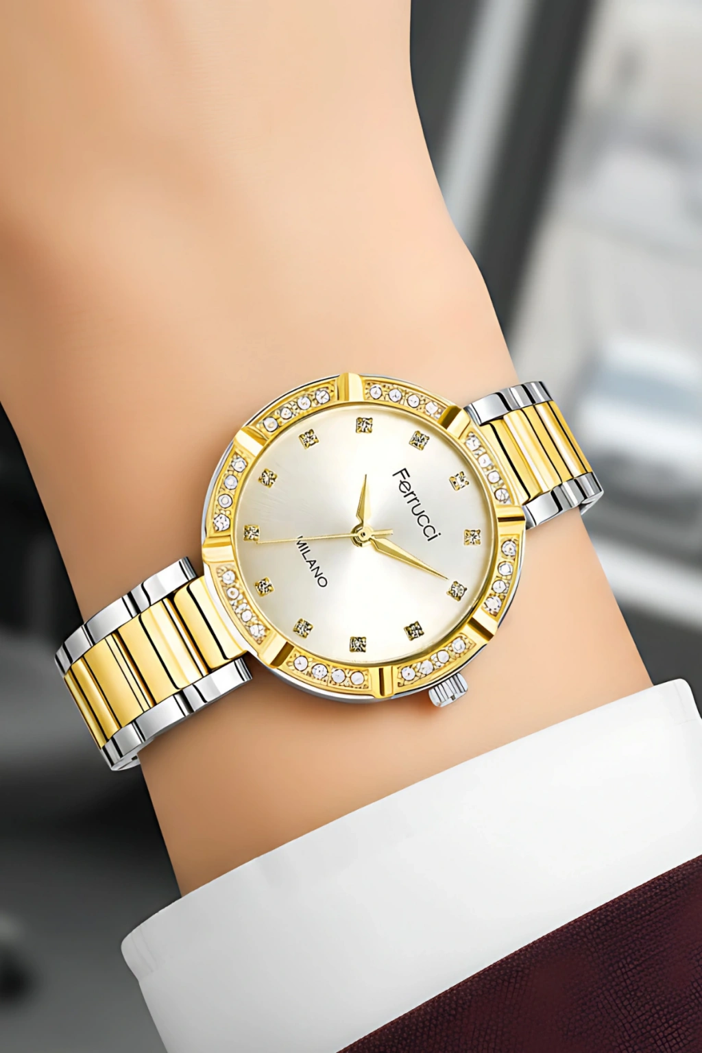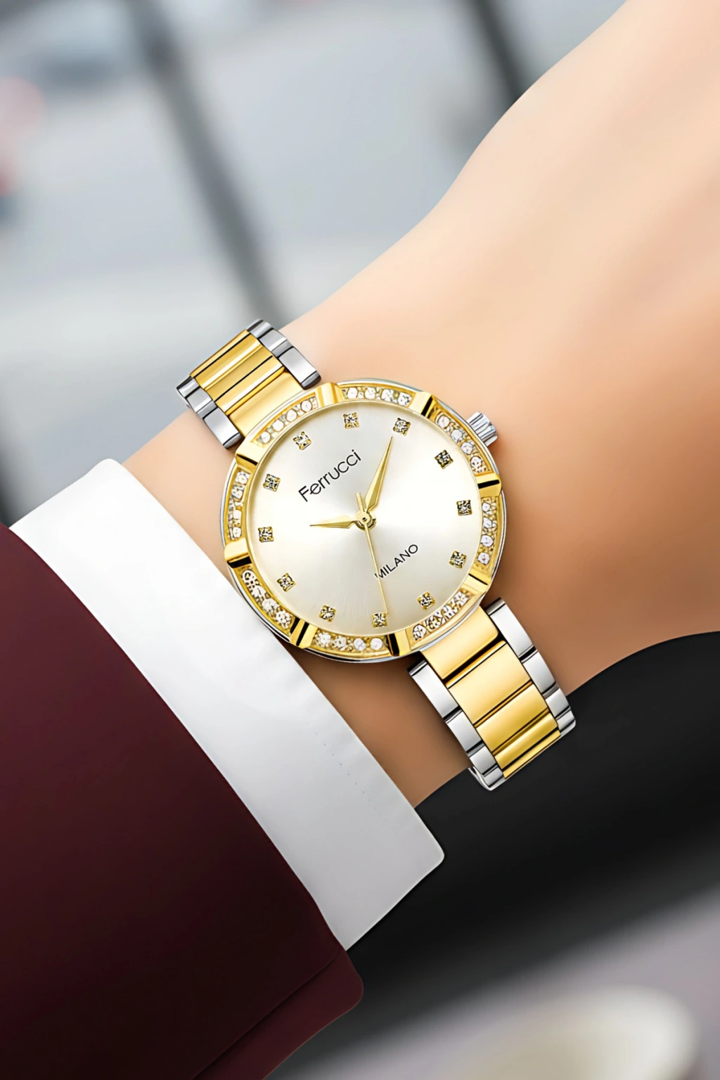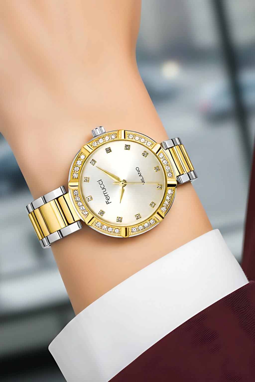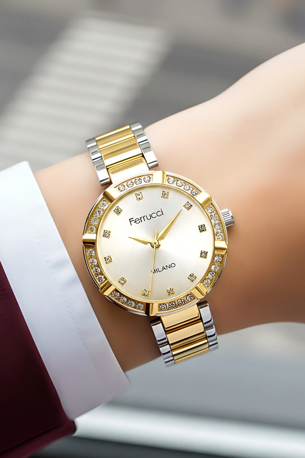 Ferrucci Milano Kadın Kol Saati – Işıltılı Gold Tasarım, Zarafetin En Parlak Hali