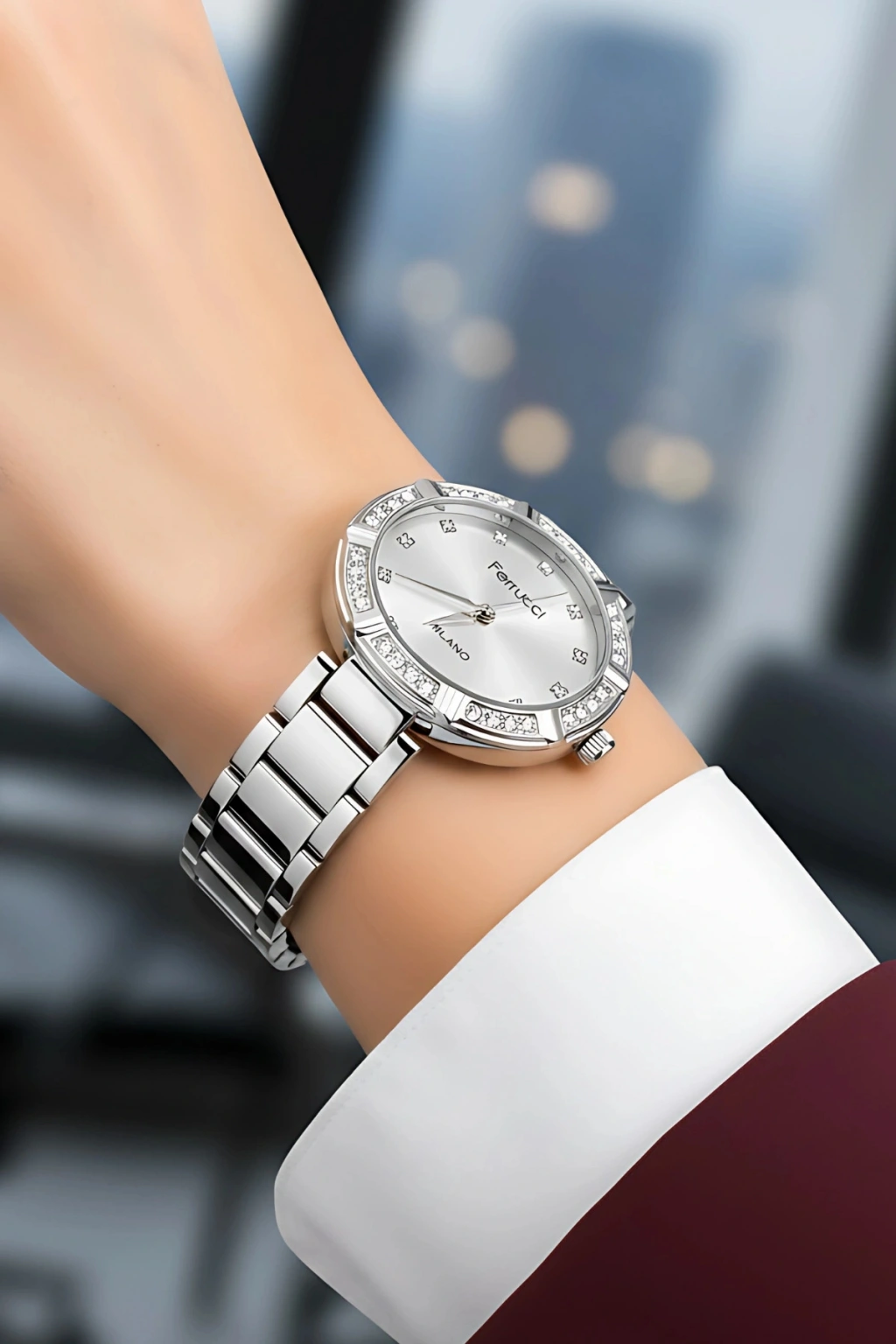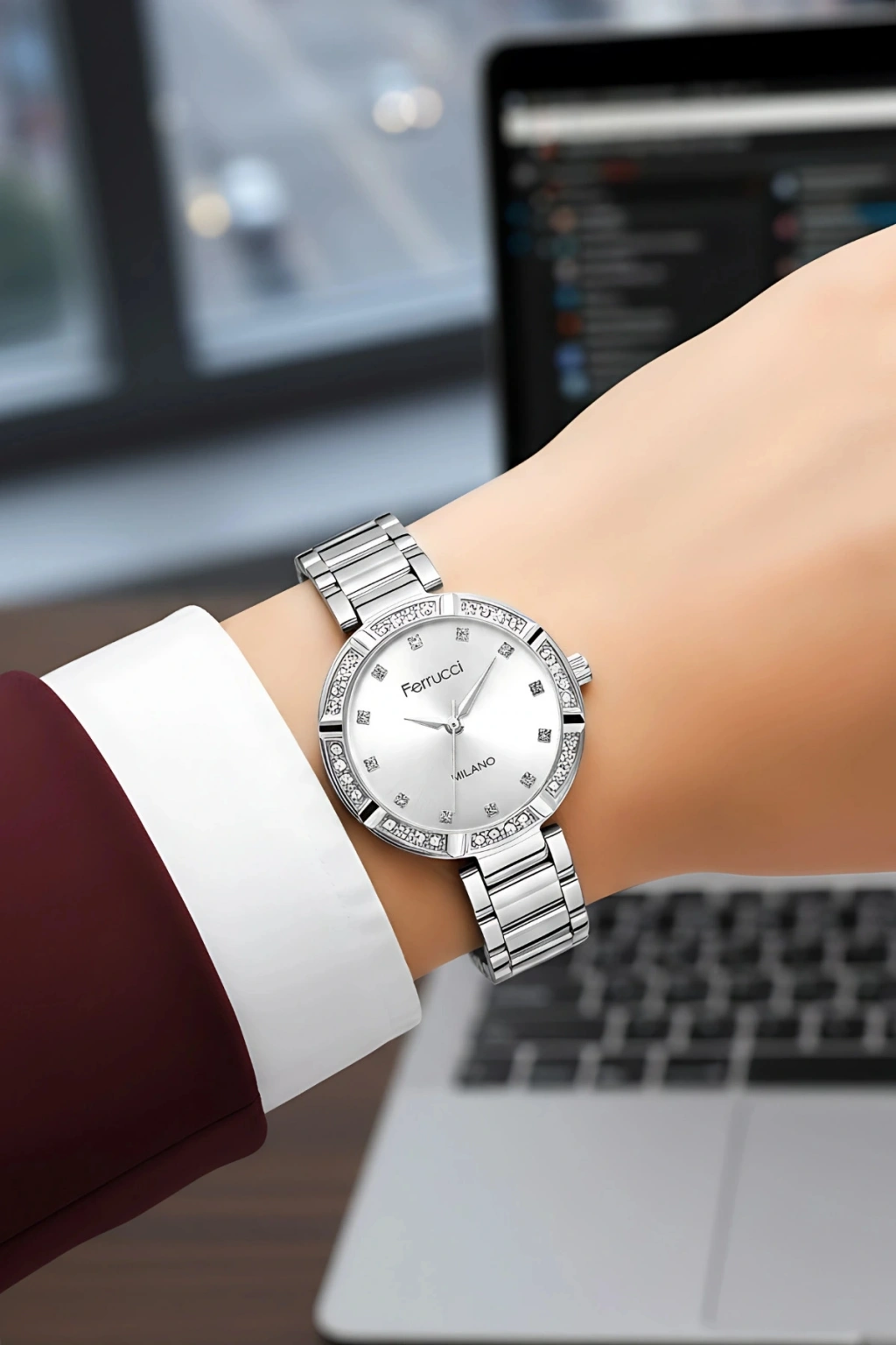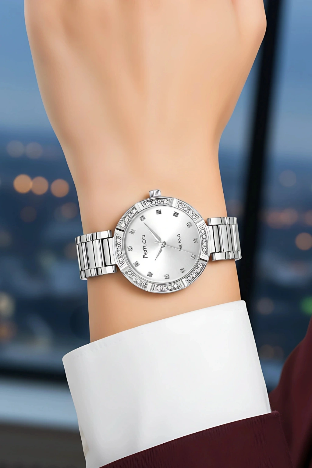 Şıklığı, zarafeti ve ışıltıyı bir arada sunan Ferrucci Milano kadın saati; hediyelik, günlük kullanım ya da özel kombinlerin tamamlayıcısı olarak aradığınız mükemmel aksesuar.
