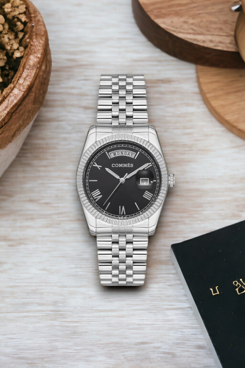 Commes Çift Takvimli Gümüş-siyah Çelik Kordon Çelik Kasa Kadın Kol Saati Sdcms035