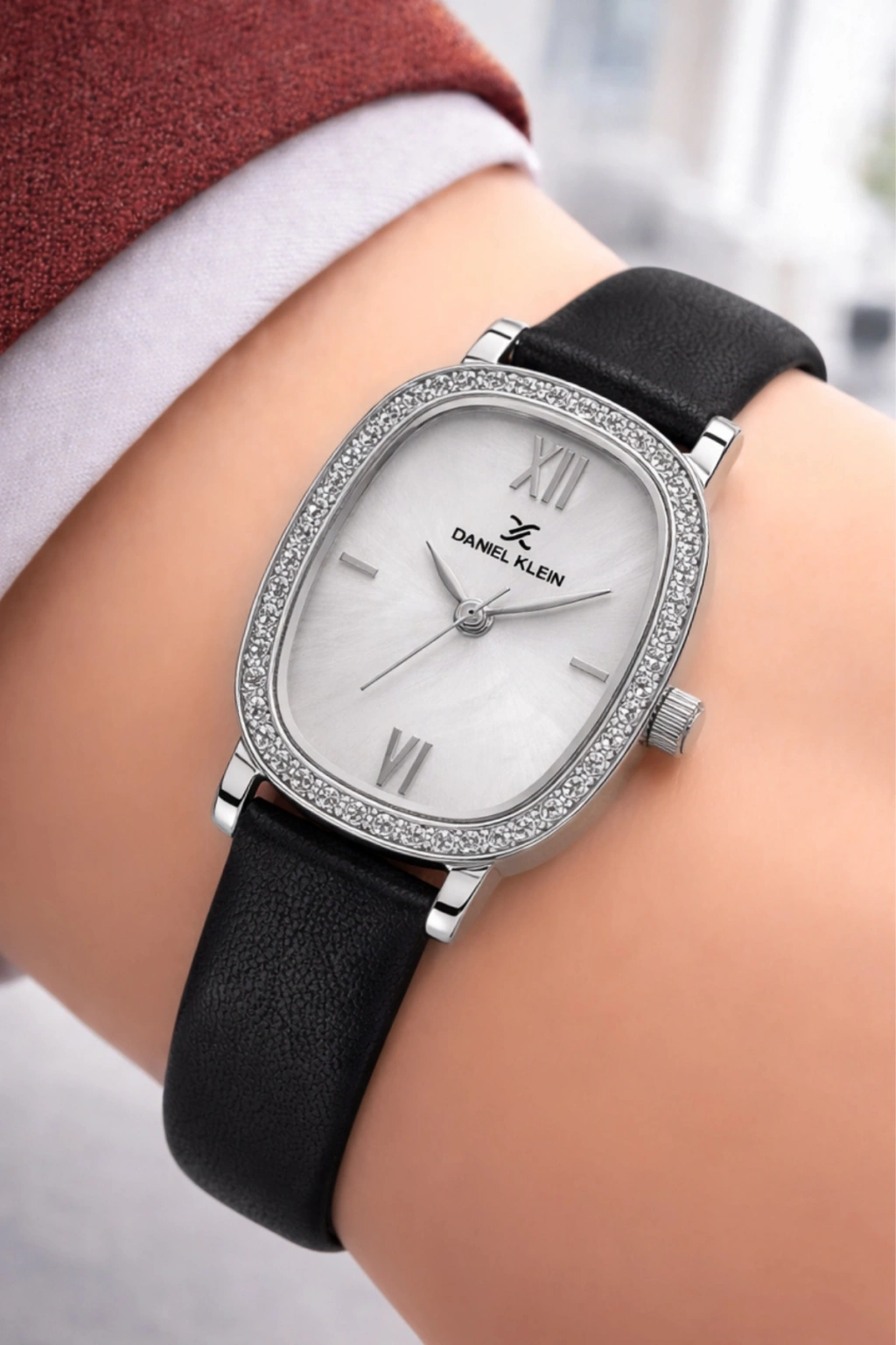 Daniel Klein SDDK112 Kadın Kol Saati – Zarif Taşlı Oval Kasa, Şık Deri Kordon | sdsaat