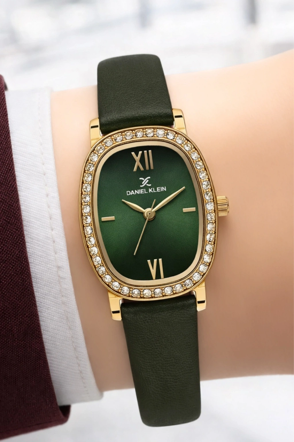 Daniel Klein SDDK112 Kadın Kol Saati – Zarif Taşlı Oval Kasa, Şık Deri Kordon | sdsaat