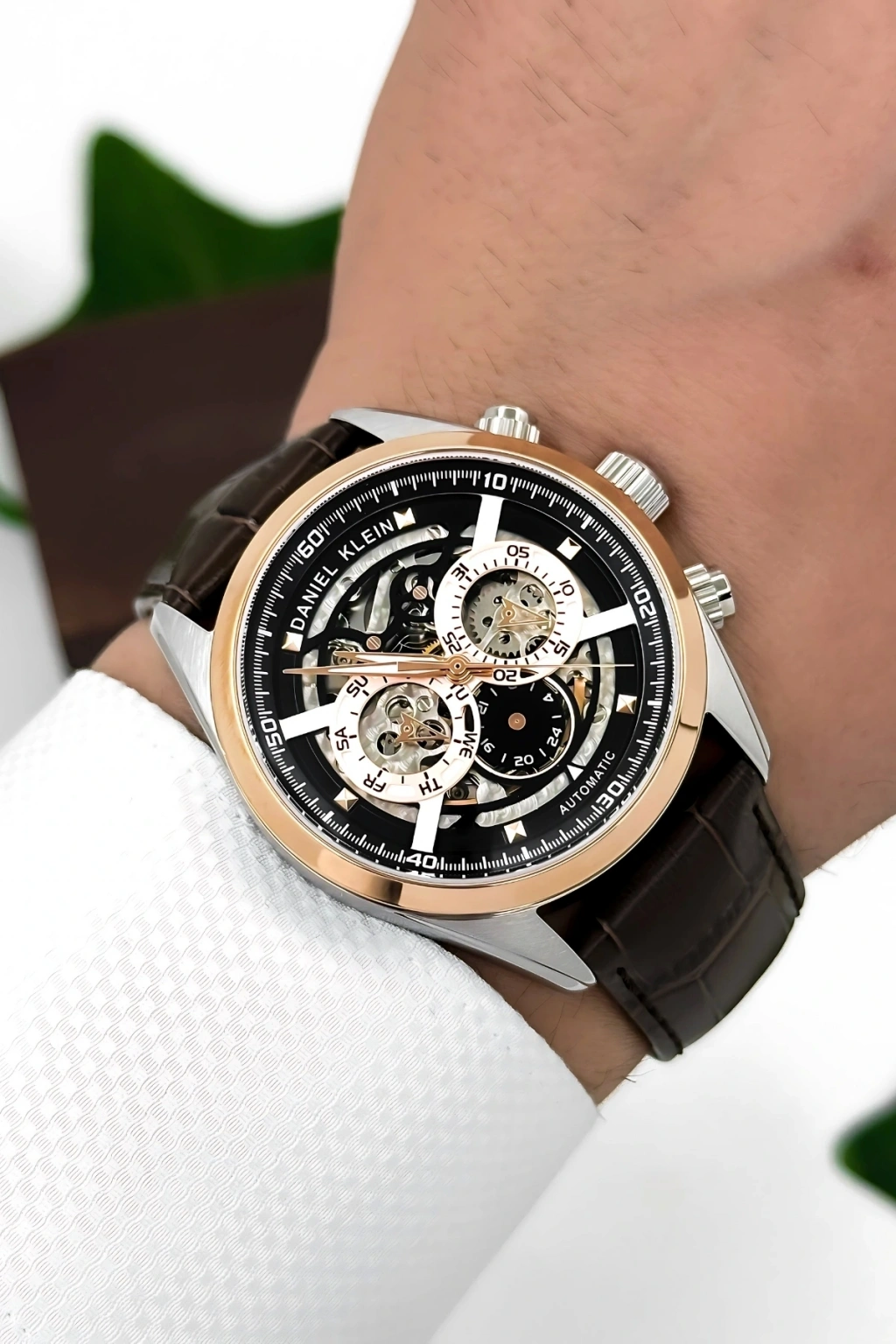 Daniel Klein Deri Kordon Çelik Kasa Otomatik Mekanizma Erkek Kol Saati Kahve-Rose sddk104