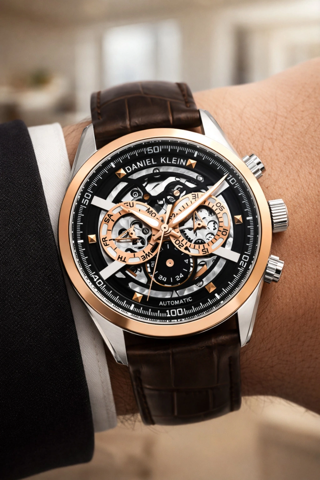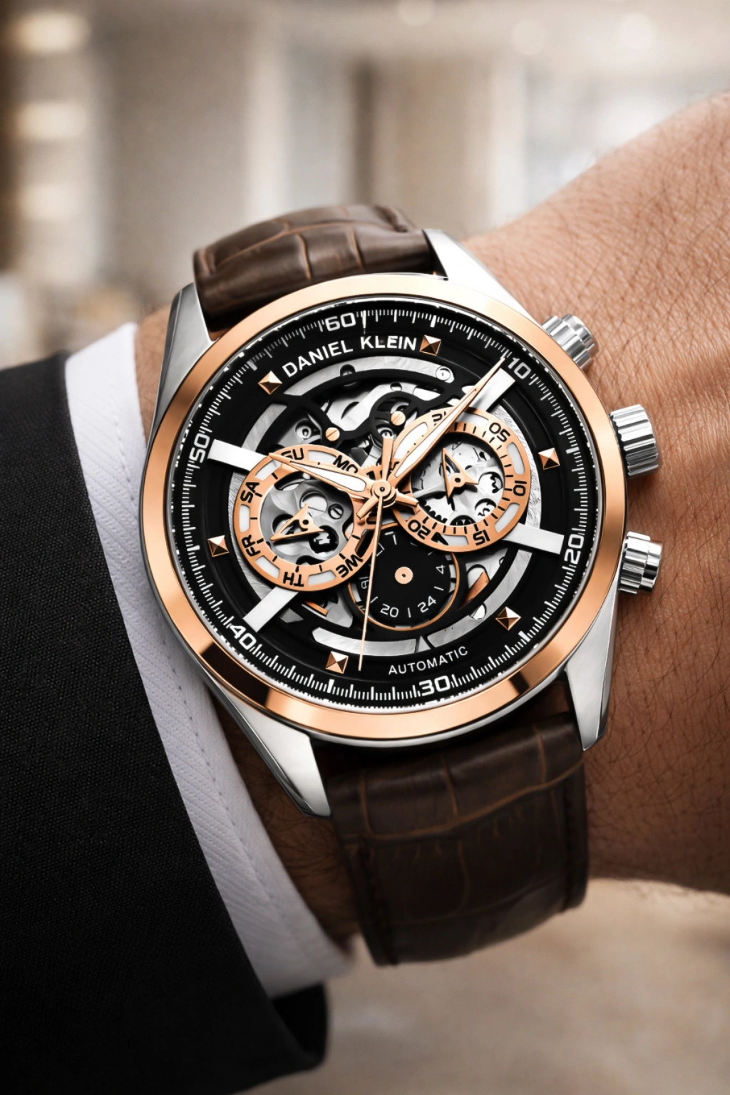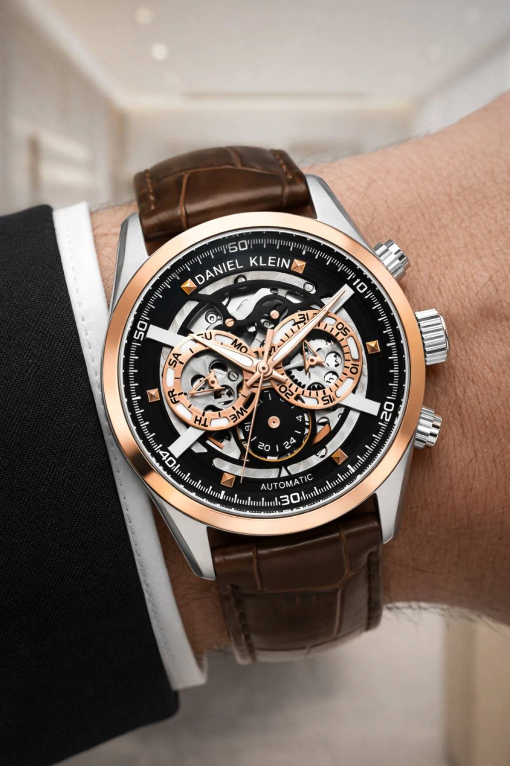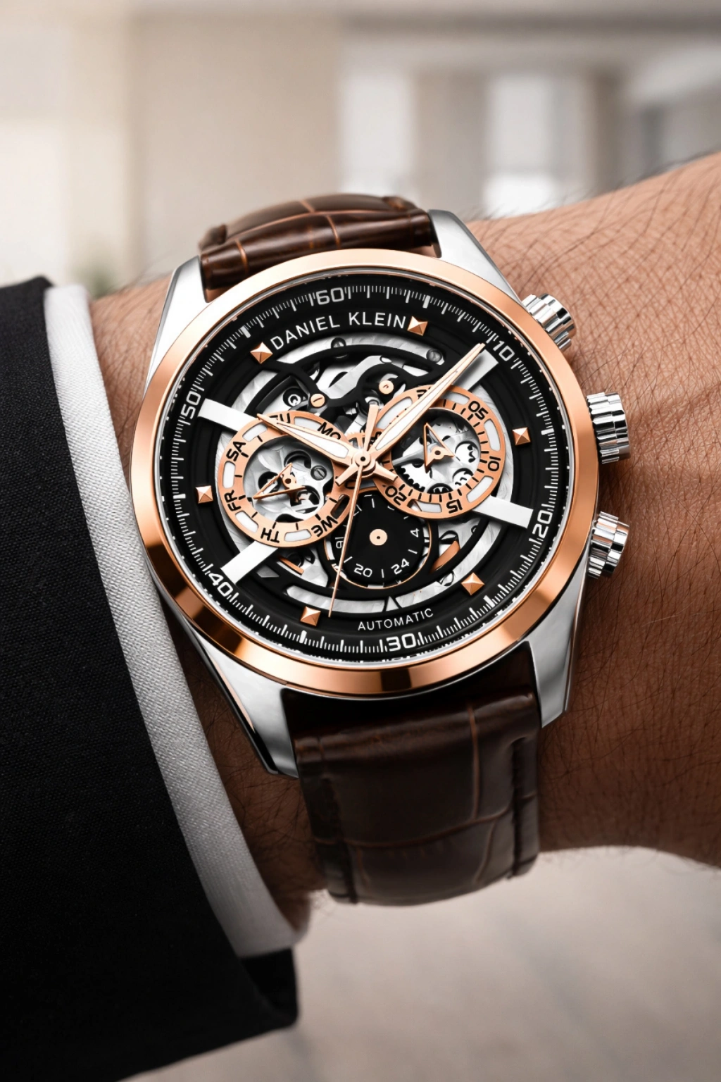Daniel Klein Erkek Kol Saati – Otomatik Mekanizma, Skeleton Tasarım ve Deri Kordon Şıklığıyla SDSaat’te