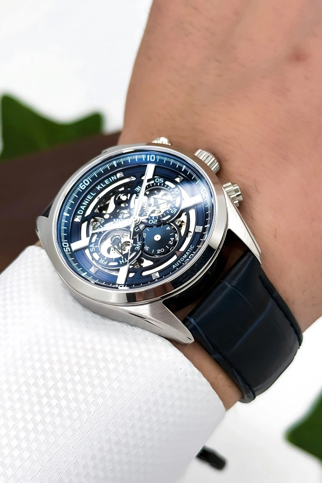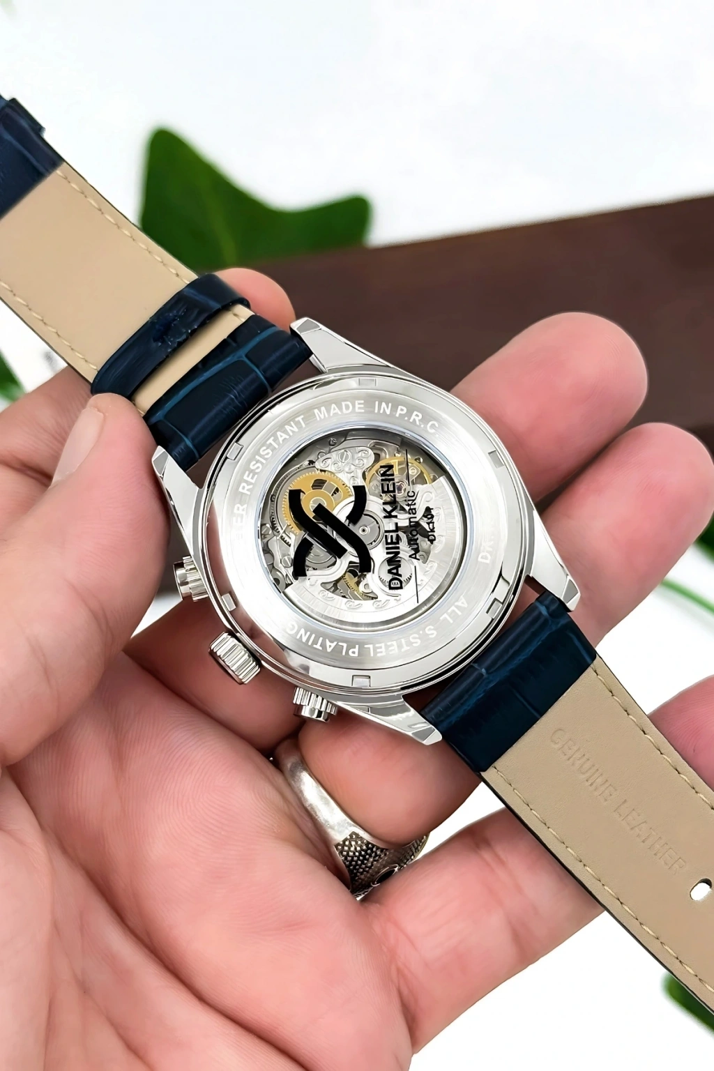 Daniel Klein Deri Kordon Çelik Kasa Otomatik Mekanizma Erkek Kol Saati Lacivert sddk104