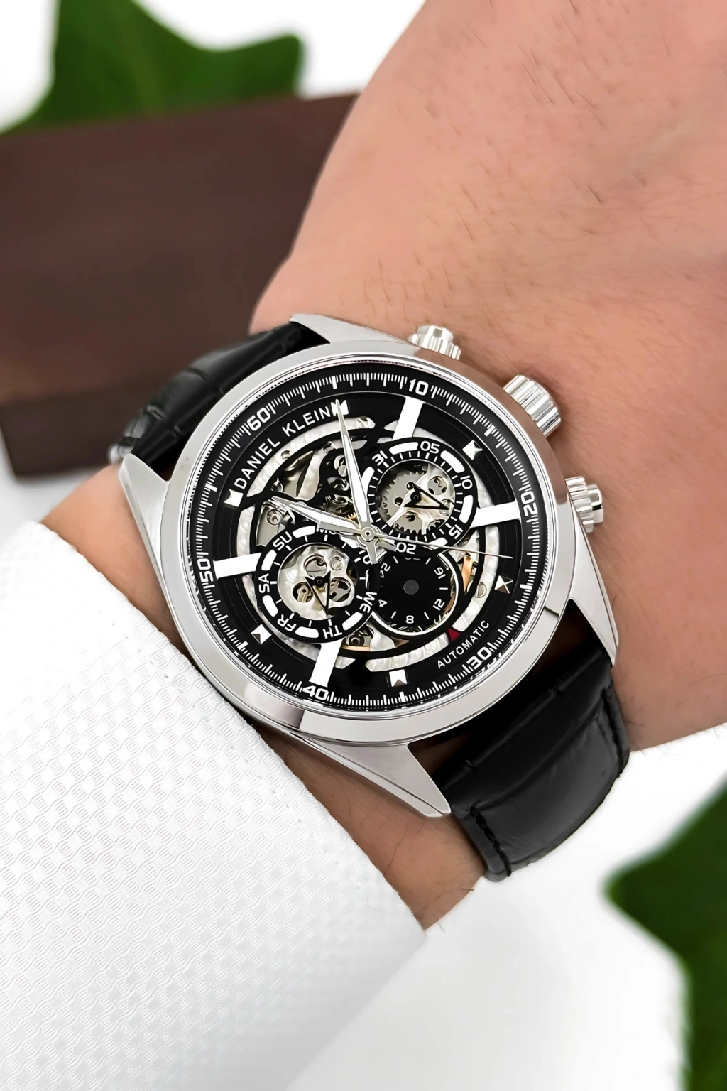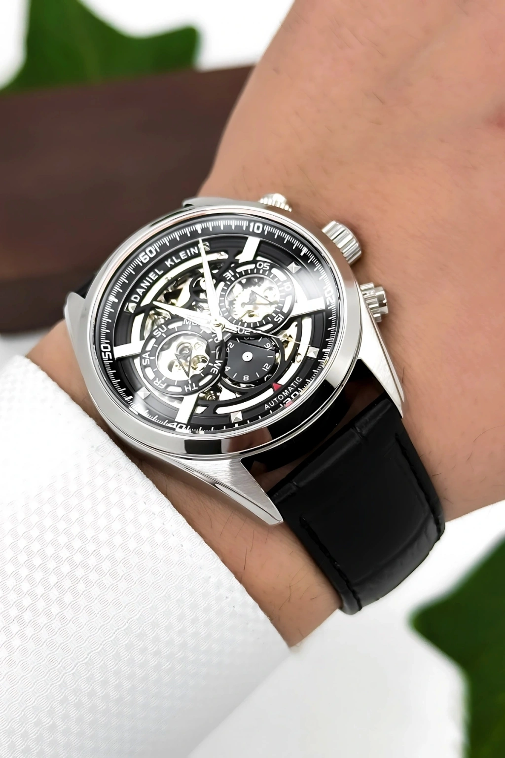 Daniel Klein Deri Kordon Çelik Kasa Otomatik Mekanizma Erkek Kol Saati Siyah sddk104