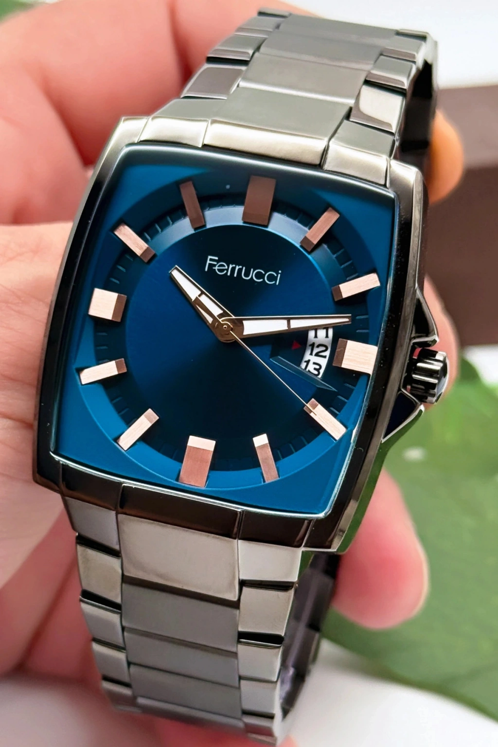 Kasa kısmında ise 40 mm genişlik ve 44 mm yükseklik ölçüleriyle ideal boyutlara sahip olan Ferrucci SDFER163, hem spor hem klasik kombinlerle rahatlıkla kullanılabilir. Saatin toplam ağırlığı 174 gram olup, elde ve bilekte kaliteli bir hissiyat yaratır.