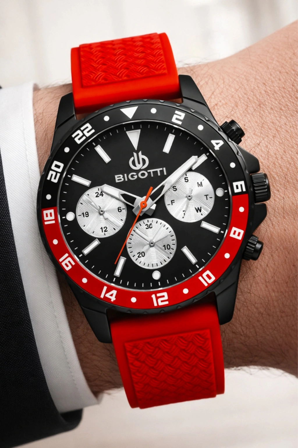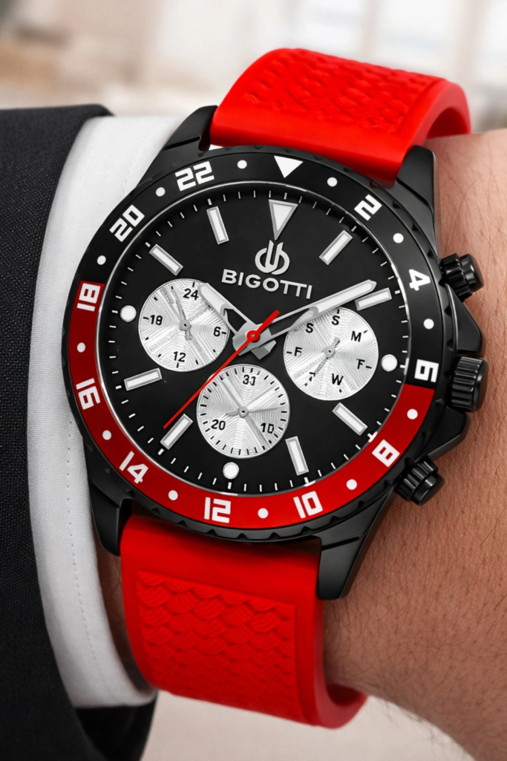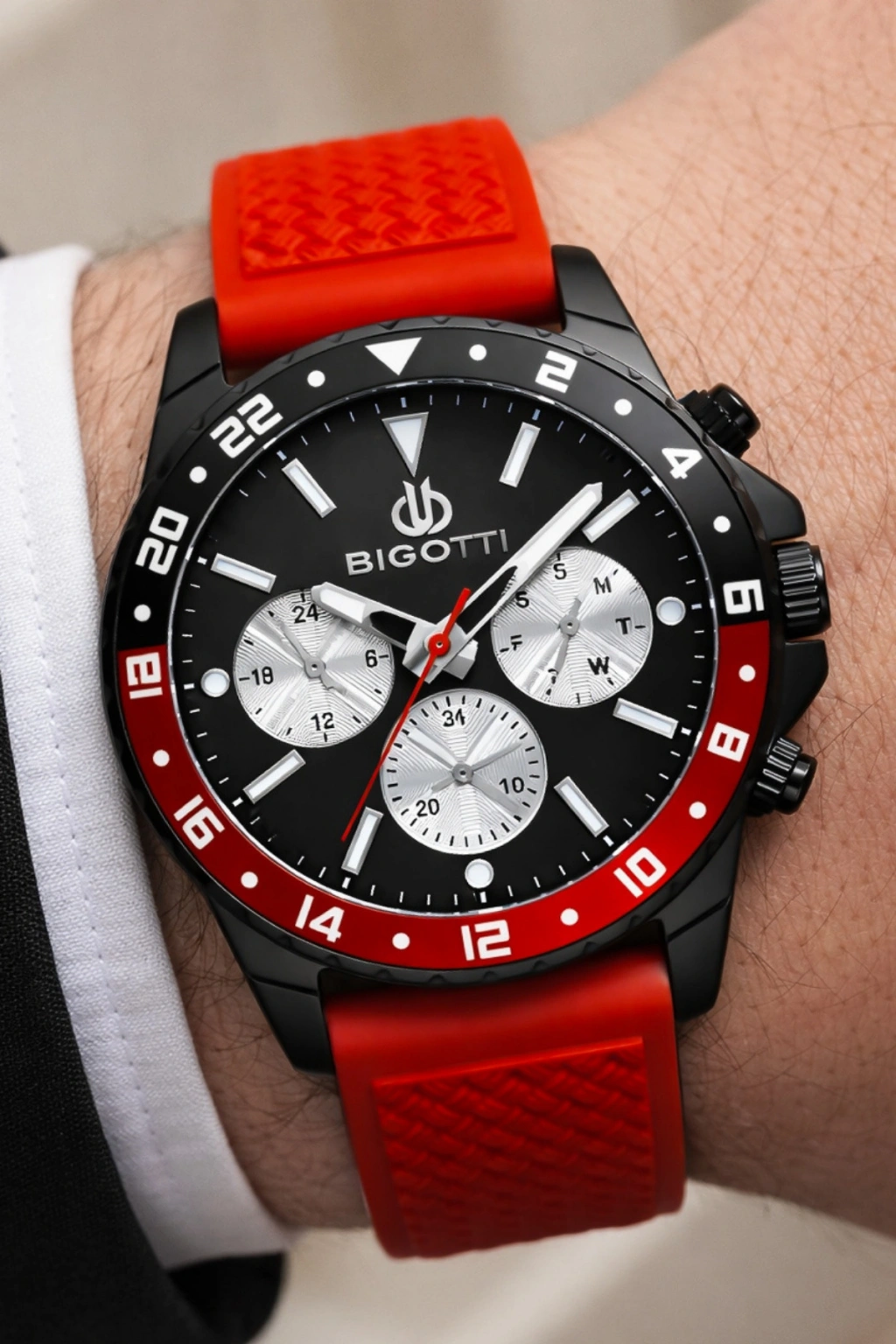 Bigotti Erkek Kol Saati, şık ve işlevsel bir tasarıma sahiptir; Ürünümüzün tüm fonksiyonları aktiftir, böylece saatinizi istediğiniz şekilde kullanabilirsiniz; Saatin silikon kordonu rahat bir kullanım sağlarken, çelik kasa dayanıklılık ve şıklık sunar; Bu ürünümüz, 3 atm su geçirmezlik özelliğine sahiptir; Ancak havuz, deniz veya duş gibi su altında kullanımlara uygun değildir; Lütfen bu konuda dikkatli olunuz; Tüm Bigotti ürünleri, orijinal ve garantilidir; Satın aldığınız her ürün, garanti belgesi ve faturasıyla birlikte gelir; Ayrıca, tüm siparişlerimiz hediye paketi içerisinde gönderilir, böylece ürününüzü güvenli bir şekilde alabilirsiniz; Ürün faturaları, mail adresinize gönderilmektedir; Bu sayede, fatura bilgilerinizi kolayca saklayabilir ve gerektiğinde erişebilirsiniz; İade seçeneği, kullanılmış ürünler için geçerli değildir; Eğer iade oluşturmak isterseniz, ürünle birlikte gönderilen tüm aksesuarları (kutu, çanta, koruma ambalajı gibi) eksiksiz bir şekilde geri göndermeniz gerekmektedir; ;;