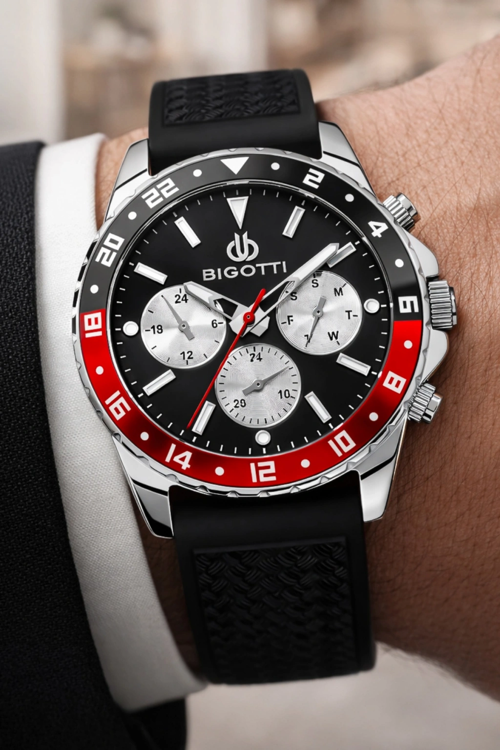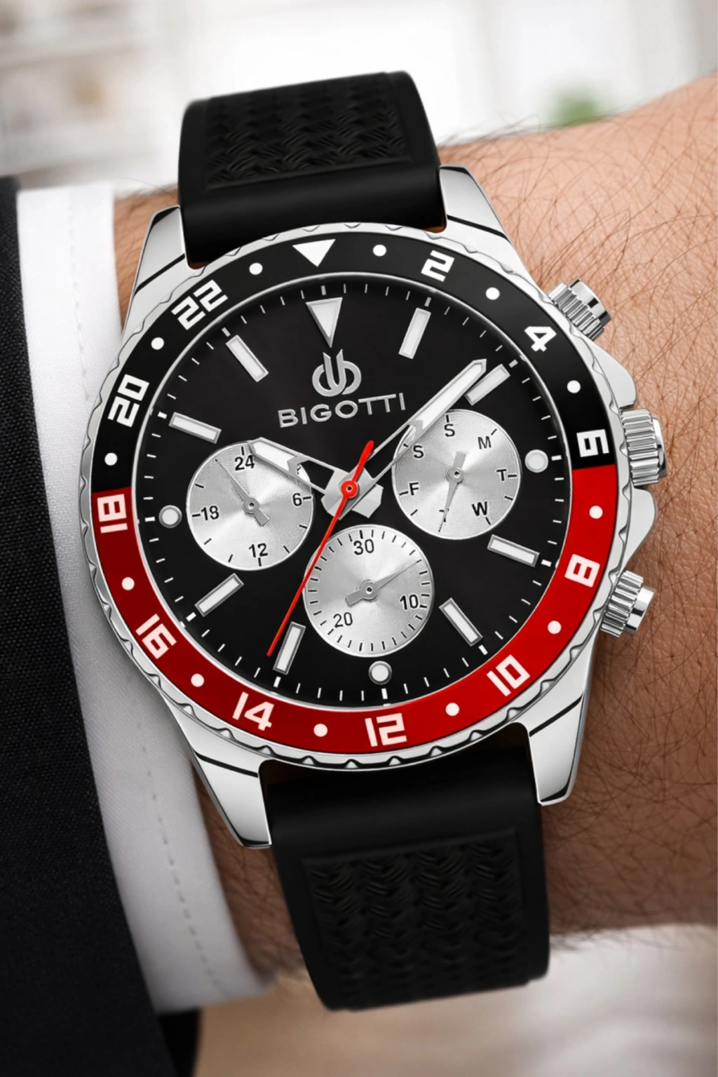 Bigotti Erkek Kol Saati, Tüm Fonksiyonlar Aktif Siyah Silikon Kordon Sdbgt001