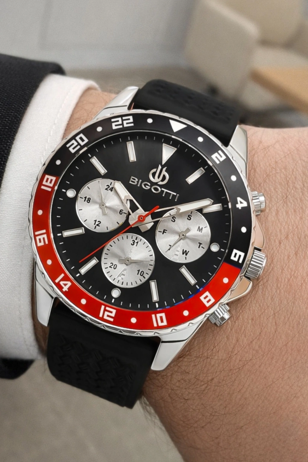 Bigotti Erkek Kol Saati, şık ve işlevsel bir tasarıma sahiptir; Ürünümüzün tüm fonksiyonları aktiftir, böylece saatinizi istediğiniz şekilde kullanabilirsiniz; Saatin silikon kordonu rahat bir kullanım sağlarken, çelik kasa dayanıklılık ve şıklık sunar; Bu ürünümüz, 3 atm su geçirmezlik özelliğine sahiptir; Ancak havuz, deniz veya duş gibi su altında kullanımlara uygun değildir; Lütfen bu konuda dikkatli olunuz; Tüm Bigotti ürünleri, orijinal ve garantilidir; Satın aldığınız her ürün, garanti belgesi ve faturasıyla birlikte gelir; Ayrıca, tüm siparişlerimiz hediye paketi içerisinde gönderilir, böylece ürününüzü güvenli bir şekilde alabilirsiniz; Ürün faturaları, mail adresinize gönderilmektedir; Bu sayede, fatura bilgilerinizi kolayca saklayabilir ve gerektiğinde erişebilirsiniz; İade seçeneği, kullanılmış ürünler için geçerli değildir; Eğer iade oluşturmak isterseniz, ürünle birlikte gönderilen tüm aksesuarları (kutu, çanta, koruma ambalajı gibi) eksiksiz bir şekilde geri göndermeniz gerekmektedir; ;;