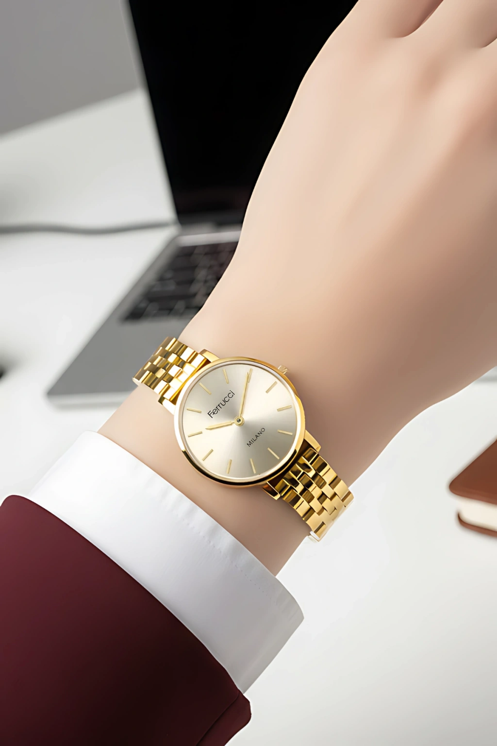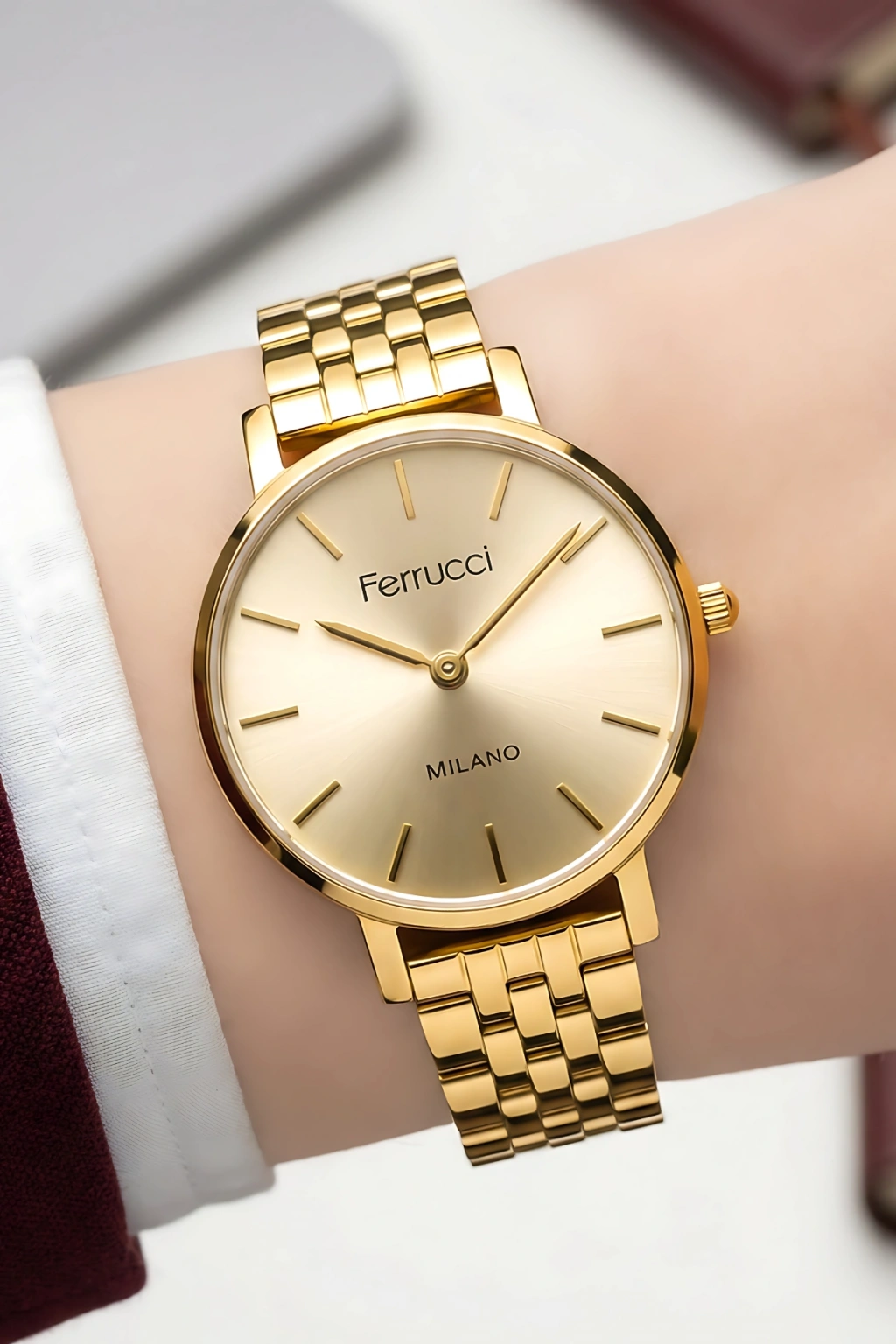 Ferrucci Milano kadın kol saati; elbise, klasik takım, gömlek ve günlük kombinlerle mükemmel uyum sağlar. Çift renkli yapısı sayesinde hem altın hem gümüş takılarla rahatça kombinlenebilir. Zamansız tasarımıyla modası geçmeyen bir stil sunar. Aynı zamanda doğum günü, yıl dönümü, anneler günü ve özel günler için şık ve anlamlı bir hediye alternatifi oluşturur.