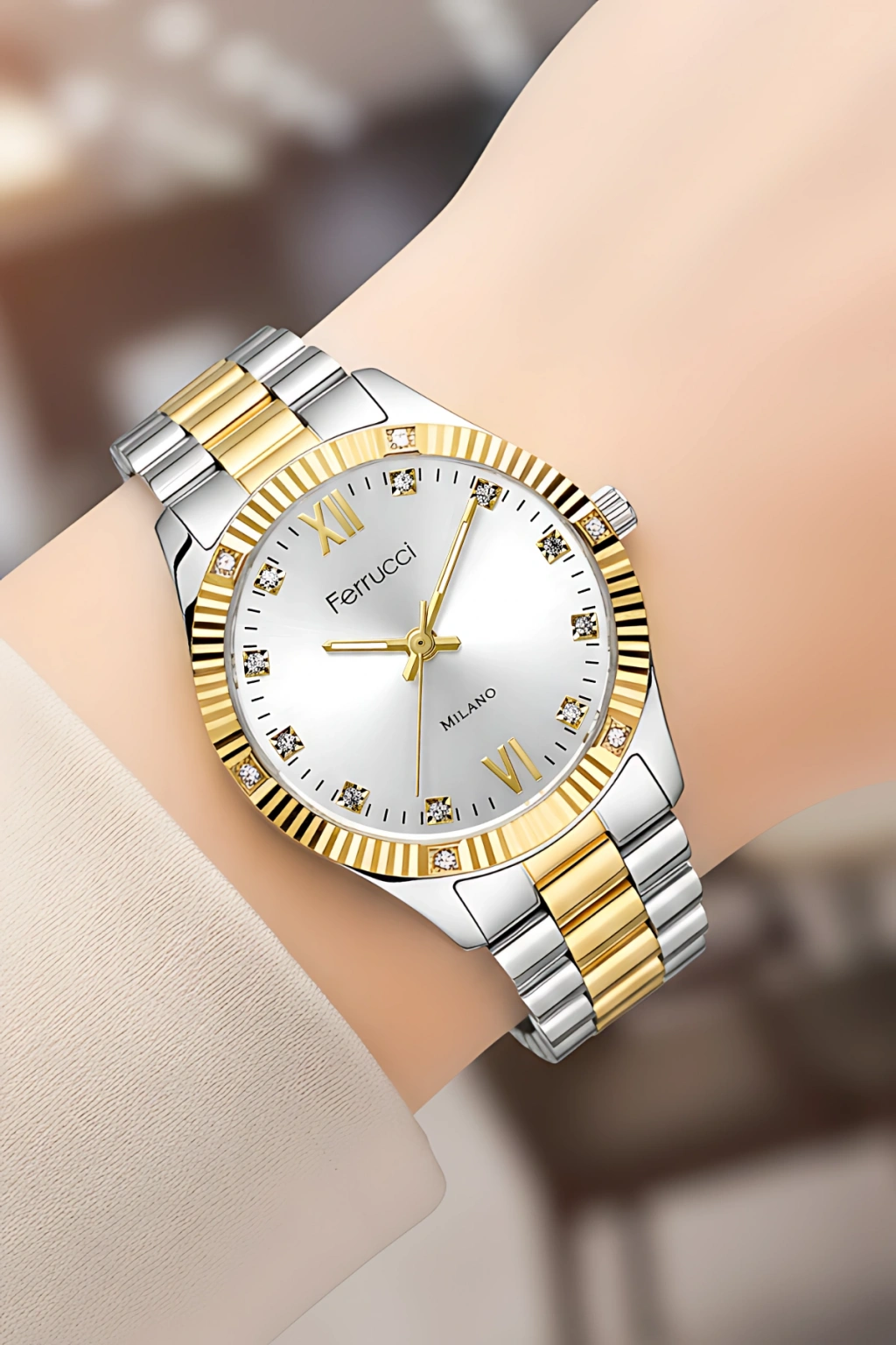 Ferrucci Çelik Kordon Çelik Kasa Kadın Kol Saati Gümüş-Gold sdfer188