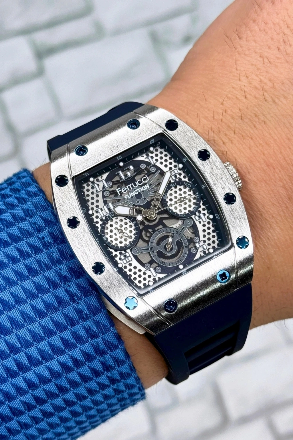 Ferrucci Erkek Kol Saati: Modern Stilin ve Dayanıklılığın Sembolü; Modern Tasarım ve Zarif Görünüm: Ferrucci'nin özel tasarım erkek kol saati, çağdaş modanın zarif çizgilerini bileğinize taşıyor. 44mm çelik kasa ve estetik güzelliğiyle dikkat çeken bu saat, 19mm genişliğindeki sağlam çelik kordonuyla konfor ve şıklığı bir arada sunuyor.; Fonksiyonellik ve Konfor: Sağlam silikon kordonu, günlük kullanımda üstün konfor sağlarken, çelik kasa zorlu koşullara karşı dayanıklılık vaat ediyor. Her bir buton ve fonksiyonun aktif olarak çalışması, bu saatte kalitenin her detayda hissedilmesini sağlıyor.; Takvim Özelliği ve Günlük Pratiklik: Entegre takvim özelliği, günlük yaşantınızda tarihleri takip etmeyi kolaylaştırırken, saatin genel kullanışlılığını artırıyor.; 3 ATM Suya Dayanıklılık: Yağmurda veya el yıkarken rahatlıkla kullanabileceğiniz bu saat, günlük su sıçramalarına karşı 3 ATM suya dayanıklılık özelliğine sahip.; Çizilmeye Dayanıklı Mineral Cam: Özel üretilmiş mineral cam, saat camını çizilmelere karşı koruyarak, saatinizi zamanın izlerinden uzak tutuyor.; Özel Hediye Paketi ve Kişiselleştirilebilir Not Kartı: Sevdiklerinize unutulmaz bir hediye vermek istediğinizde, bu saat özel hediye paketi ve kişiselleştirilebilir not kartı ile birlikte gelerek, hediye verme deneyiminizi daha da anlamlı kılıyor.; 2 Yıl Orijinal Garanti: Ferrucci'nin bu özel tasarımı, 2 yıl orijinal garantisi ile birlikte gelmekte, kullanıcılarına endişesiz bir deneyim sunuyor.; Özel Üretim ve Kaliteli Saat: Sınırlı sayıda üretim olan bu lüks aksesuar, Ferrucci koleksiyonunun bir parçası olarak, kalite ve zarafeti temsil ediyor.; Bu özel ürün, zamanın asaletini bileğinizde taşımak ve stilinizi tamamlamak için ideal bir seçimdir. Şimdi sdsaat.com'da!; Bu özel Ferrucci erkek saatini, sınırlı sayıda ve özel tasarım avantajlarıyla sdsaat'de bulabilirsiniz. Şıklığı ve kaliteyi bileğinizde taşıyın!; Ferrucci Erkek Saati; Modern Erkek Saati; Zarif Tasarım Saat; 44mm Çelik Kasa Saat; Dayanıklı Erkek Saati; Estetik Erkek Aksesuarı; 19mm Çelik Kordon; Konforlu Erkek Saati; Çizilmeye Dayanıklı Saat; Mineral Cam Erkek Saati; 3 ATM Su Dirençli Saat; Günlük Kullanım Saati; Garantili Ferrucci Saati; Şık Hediye Paketli Saat; Sınırlı Sayıda Özel Tasarım; Lüks Erkek Aksesuarı; Kaliteli Malzeme Saati; Etkileyici Hediye Saati; Profesyonel Müşteri Hizmetleri; sdsaat Özel Koleksiyonu;