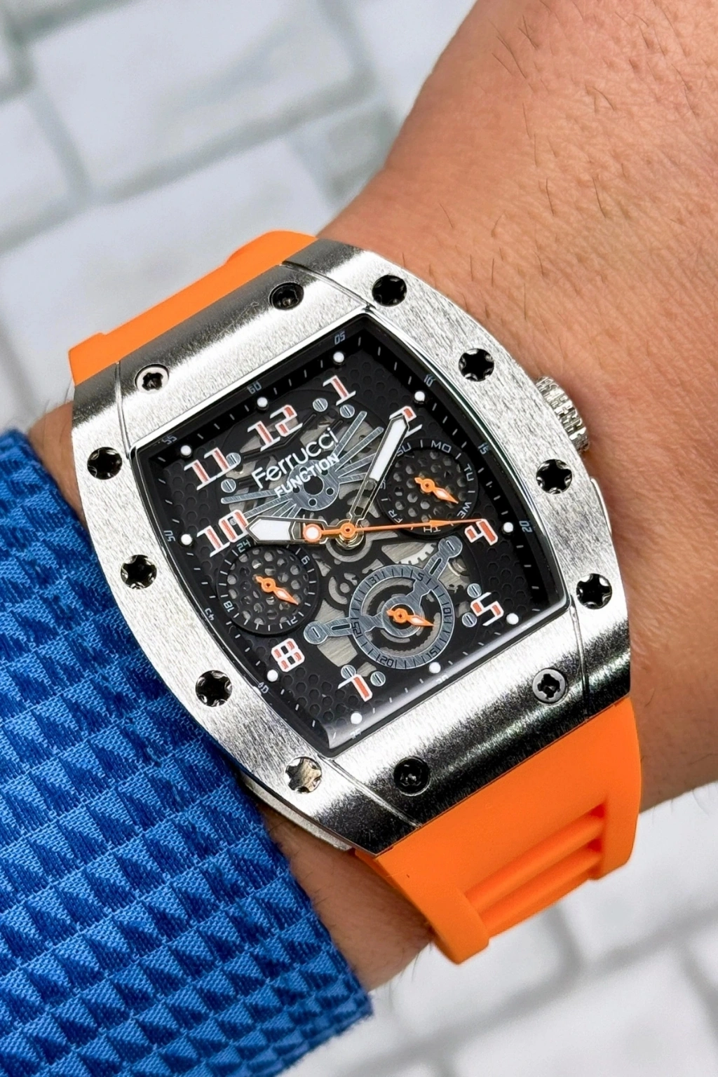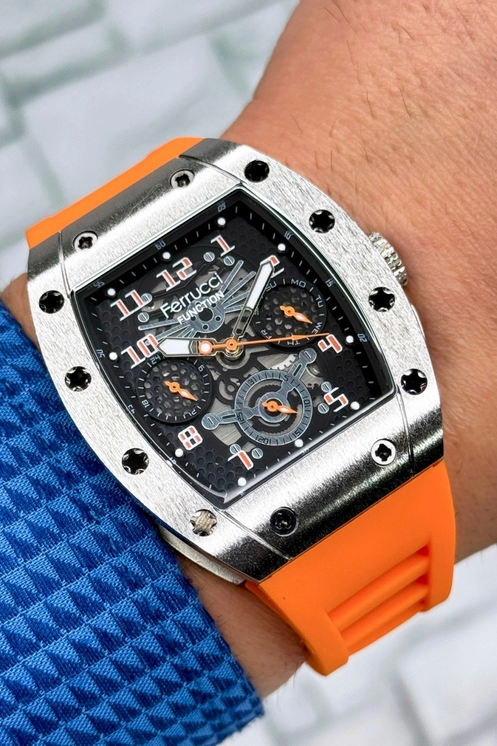 Ferrucci Erkek Kol Saati: Modern Stilin ve Dayanıklılığın Sembolü; Modern Tasarım ve Zarif Görünüm: Ferrucci'nin özel tasarım erkek kol saati, çağdaş modanın zarif çizgilerini bileğinize taşıyor. 44mm çelik kasa ve estetik güzelliğiyle dikkat çeken bu saat, 19mm genişliğindeki sağlam çelik kordonuyla konfor ve şıklığı bir arada sunuyor.; Fonksiyonellik ve Konfor: Sağlam silikon kordonu, günlük kullanımda üstün konfor sağlarken, çelik kasa zorlu koşullara karşı dayanıklılık vaat ediyor. Her bir buton ve fonksiyonun aktif olarak çalışması, bu saatte kalitenin her detayda hissedilmesini sağlıyor.; Takvim Özelliği ve Günlük Pratiklik: Entegre takvim özelliği, günlük yaşantınızda tarihleri takip etmeyi kolaylaştırırken, saatin genel kullanışlılığını artırıyor.; 3 ATM Suya Dayanıklılık: Yağmurda veya el yıkarken rahatlıkla kullanabileceğiniz bu saat, günlük su sıçramalarına karşı 3 ATM suya dayanıklılık özelliğine sahip.; Çizilmeye Dayanıklı Mineral Cam: Özel üretilmiş mineral cam, saat camını çizilmelere karşı koruyarak, saatinizi zamanın izlerinden uzak tutuyor.; Özel Hediye Paketi ve Kişiselleştirilebilir Not Kartı: Sevdiklerinize unutulmaz bir hediye vermek istediğinizde, bu saat özel hediye paketi ve kişiselleştirilebilir not kartı ile birlikte gelerek, hediye verme deneyiminizi daha da anlamlı kılıyor.; 2 Yıl Orijinal Garanti: Ferrucci'nin bu özel tasarımı, 2 yıl orijinal garantisi ile birlikte gelmekte, kullanıcılarına endişesiz bir deneyim sunuyor.; Özel Üretim ve Kaliteli Saat: Sınırlı sayıda üretim olan bu lüks aksesuar, Ferrucci koleksiyonunun bir parçası olarak, kalite ve zarafeti temsil ediyor.; Bu özel ürün, zamanın asaletini bileğinizde taşımak ve stilinizi tamamlamak için ideal bir seçimdir. Şimdi sdsaat.com'da!; Bu özel Ferrucci erkek saatini, sınırlı sayıda ve özel tasarım avantajlarıyla sdsaat'de bulabilirsiniz. Şıklığı ve kaliteyi bileğinizde taşıyın!; Ferrucci Erkek Saati; Modern Erkek Saati; Zarif Tasarım Saat; 44mm Çelik Kasa Saat; Dayanıklı Erkek Saati; Estetik Erkek Aksesuarı; 19mm Çelik Kordon; Konforlu Erkek Saati; Çizilmeye Dayanıklı Saat; Mineral Cam Erkek Saati; 3 ATM Su Dirençli Saat; Günlük Kullanım Saati; Garantili Ferrucci Saati; Şık Hediye Paketli Saat; Sınırlı Sayıda Özel Tasarım; Lüks Erkek Aksesuarı; Kaliteli Malzeme Saati; Etkileyici Hediye Saati; Profesyonel Müşteri Hizmetleri; sdsaat Özel Koleksiyonu;