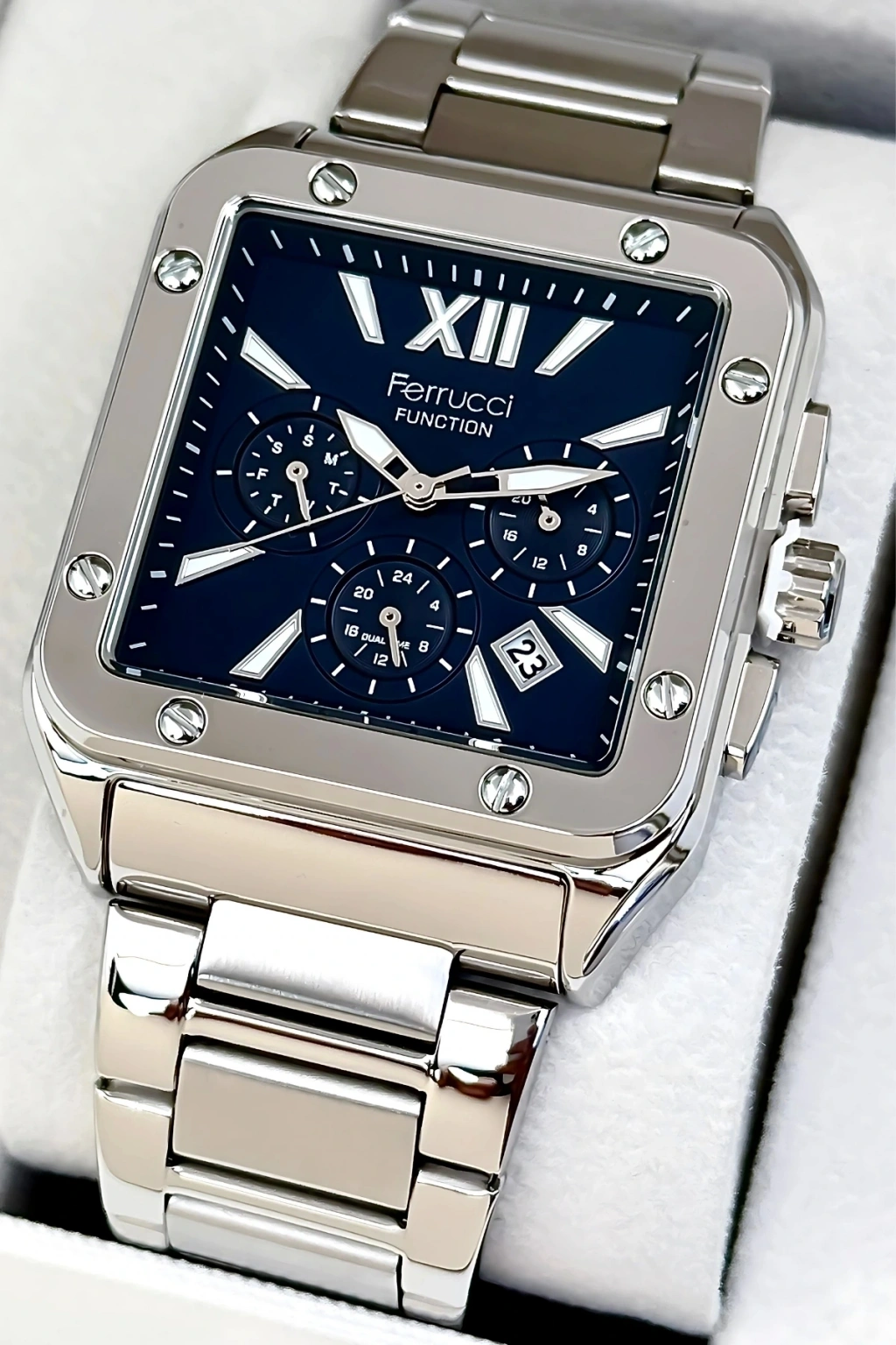 Ferrucci'nin zamansız çizgilerini taşıyan bu saat, stilinize zarif bir dokunuş katarken, işlevselliğiyle de hayatınızı kolaylaştırır. İster kendiniz için alın ister sevdiklerinize hediye edin, Ferrucci Function sdfer168, kalite ve prestiji bir arada sunuyor.