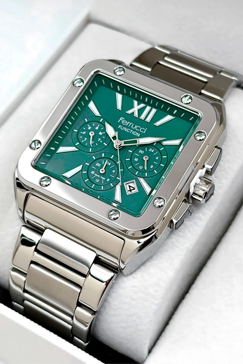 Zarif tasarımı, dayanıklı yapısı ve aktif fonksiyonlarıyla öne çıkan Ferrucci Function Erkek Kol Saati, stil sahibi erkeklerin vazgeçilmez aksesuarı olmaya aday. Çelik kasa ve çelik kordon birleşimi, hem şıklığı hem de sağlamlığı bir arada sunarken, günlük kullanımdan özel davetlere kadar her ortamda mükemmel bir tamamlayıcı görevi görüyor.
