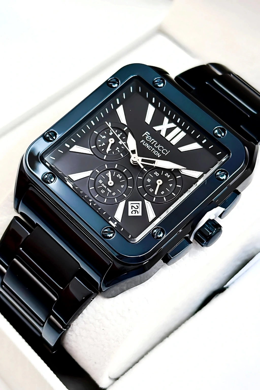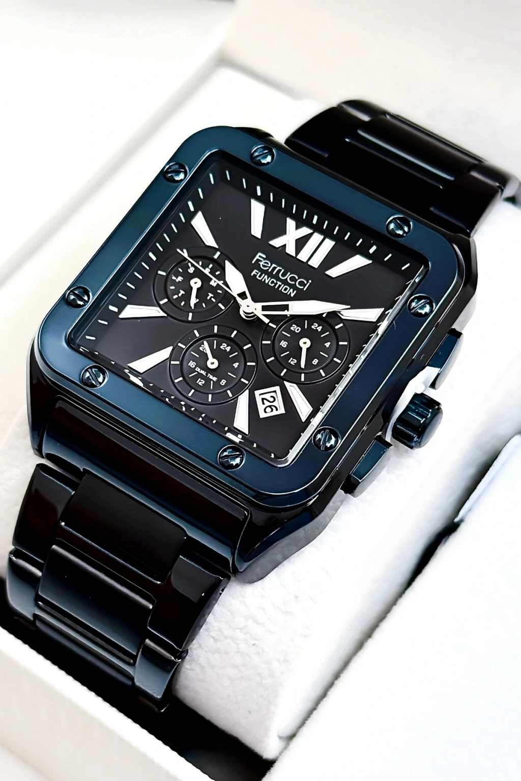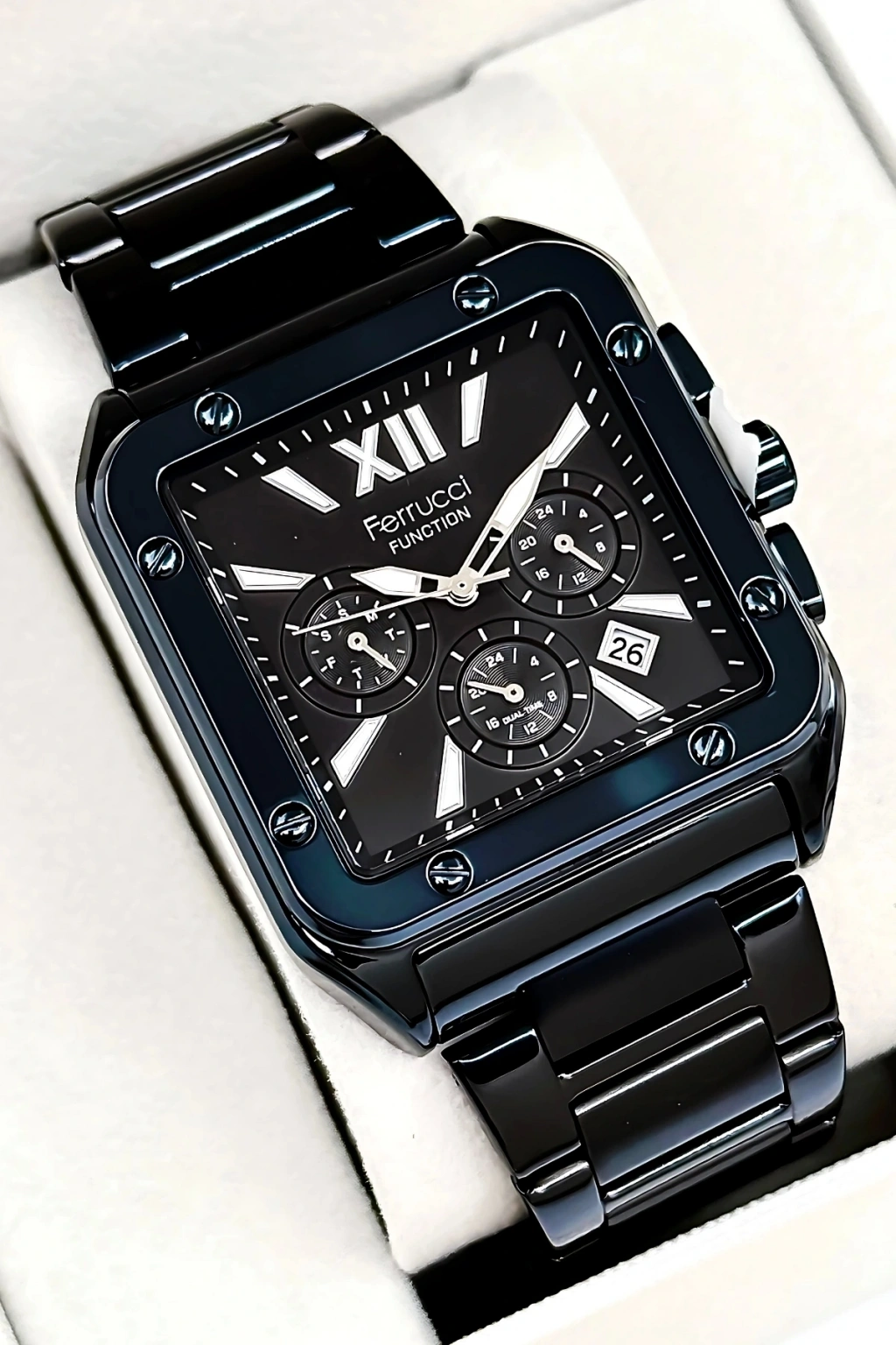 • Ferrucci'nin zamansız çizgilerini taşıyan bu saat, stilinize zarif bir dokunuş katarken, işlevselliğiyle de hayatınızı kolaylaştırır. İster kendiniz için alın ister sevdiklerinize hediye edin, Ferrucci Function sdfer168, kalite ve prestiji bir arada sunuyor.