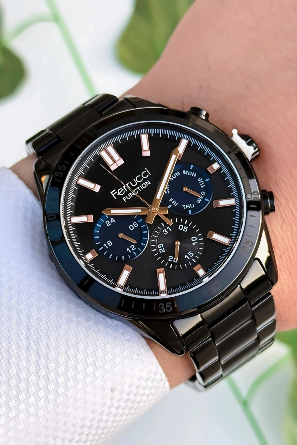 • Ferrucci Function Erkek Kol Saati – Çelik Hasır Kordon, Takvimli, Fonksiyonel ve Hediye Paketli Özel Seçim