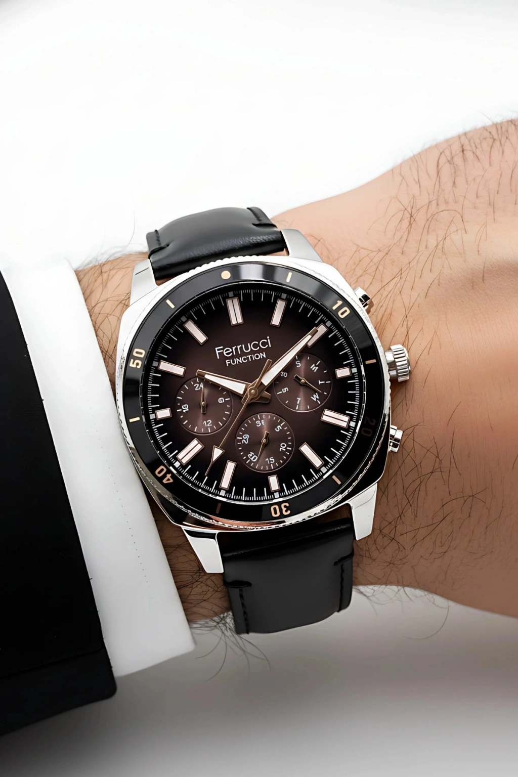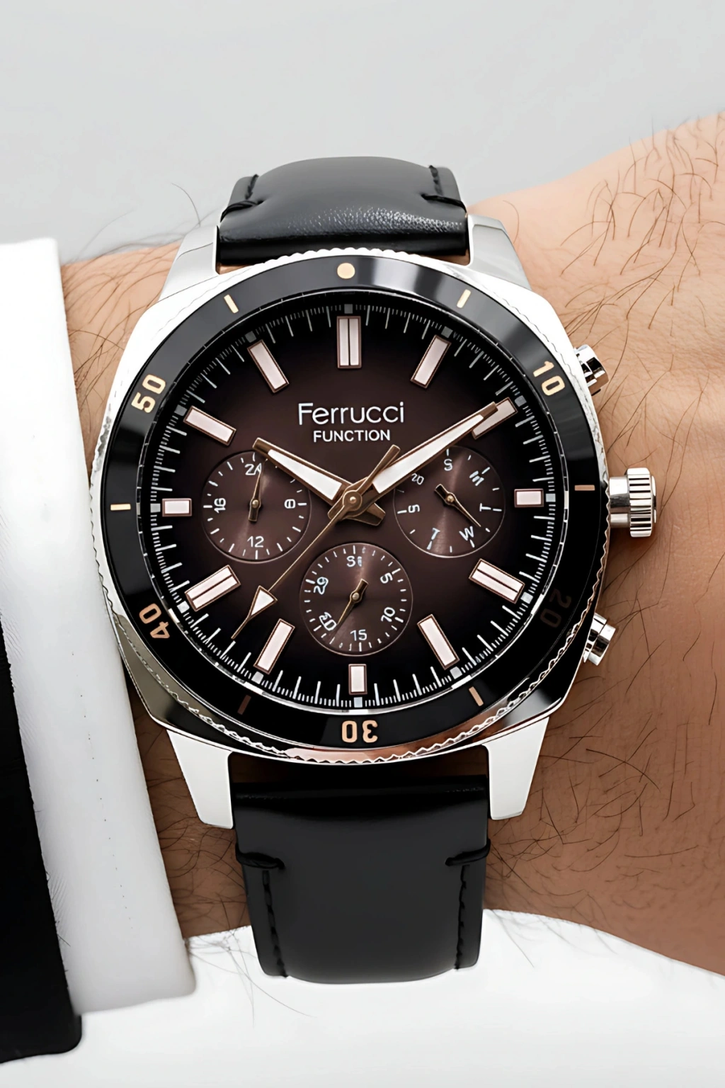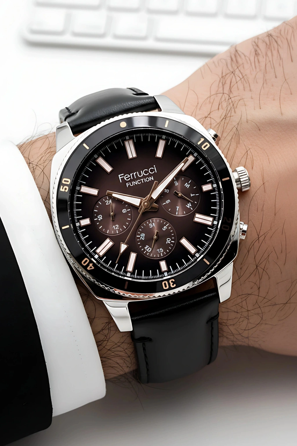 Function Erkek Kol Saati Çelik Kordon Bileklik Hediyeli Gümüş-Siyah sdfer029