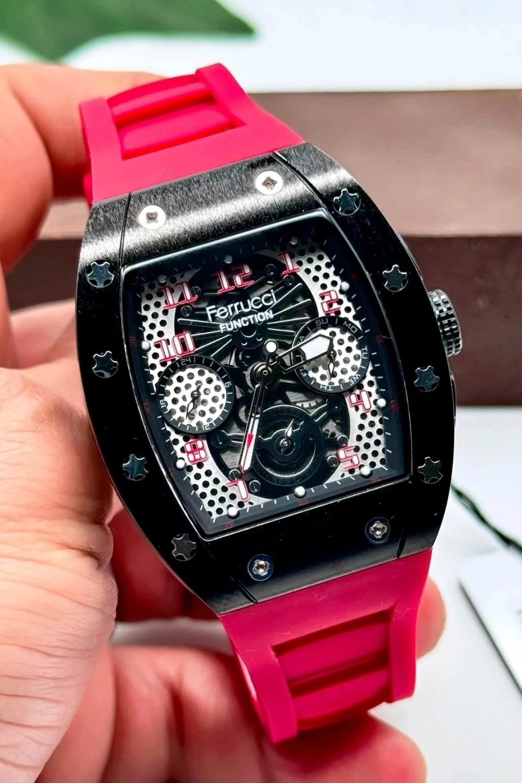 Function Erkek Kol Saati Silikon Kordon Bileklik Hediyeli 3atm Kırmızı Sdfer066