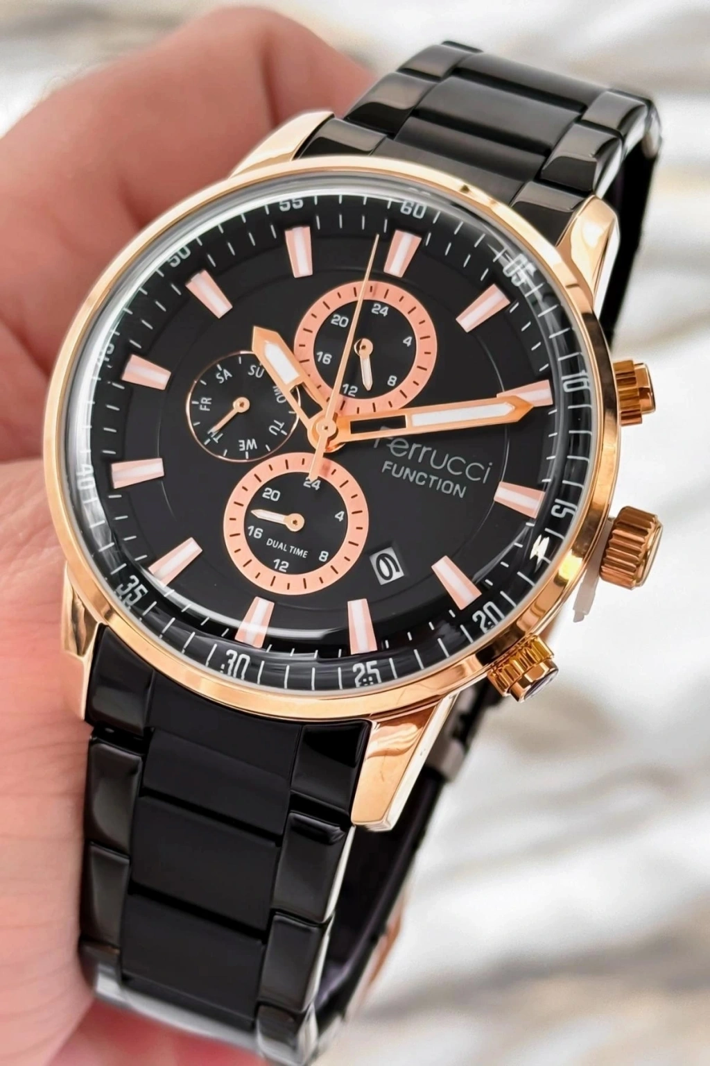 Ferrucci Marka Çelik Kordon Tüm Fonksiyonlar Aktif Erkek Kol Saati; Ferrucci marka çelik kordon tüm fonksiyonlar aktif erkek kol saati, şıklığı ve işlevselliği bir araya getiren birinci sınıf bir aksesuardır. Bu saat, kusursuz bir tasarıma sahip olan 44mm çelik kasası ve çelik kordonuyla öne çıkar. Dayanıklı yapısı ve çekici görünümüyle dikkatleri üzerinize çekmek için ideal bir seçenektir. Ayrıca, 3 atm suya dayanıklılık özelliğiyle, günlük aktivitelerinizde rahatlıkla kullanabilirsiniz.; Bu özel saat, sadece zamanı göstermekle kalmaz, aynı zamanda bir dizi fonksiyonu da aktif olarak sunar. Tarih göstergesi ile günlük takvim ihtiyaçlarınızı kolaylıkla karşılayabilirsiniz. sizi önemli randevularınız veya etkinlikleriniz hakkında bilgilendirirken, dünya saati özelliği de farklı zaman dilimlerindeki saatleri takip etmenize yardımcı olur. Bu şekilde, pratik ve işlevsel bir deneyim sunar.; Ferrucci marka çelik kordon tüm fonksiyonlar aktif erkek kol saati, yüksek kalite standartlarına uygun olarak üretilmiştir. Saat, dayanıklı çelik kasa ve çelik kordon ile uzun ömürlü bir kullanım sunar. Aynı zamanda, çelik malzeme kolayca temizlenir ve çizilmelere karşı dirençlidir. Bu sayede saat, uzun süre boyunca günlük kullanıma dayanıklıdır.; Ferrucci marka çelik kordon tüm fonksiyonlar aktif erkek kol saati, orijinal Ferrucci marka bir üründür ve 2 yıl garanti kapsamındadır. Bu garanti, ürününüzde herhangi bir imalat hatası veya işlevsellik sorunu olması durumunda size güvence sağlar.; Tarzınızı yansıtmak ve her anınızda şıklığı hissetmek için Ferrucci marka çelik kordon tüm fonksiyonlar aktif erkek kol saati mükemmel bir seçimdir. Güvenilirlik, işlevsellik ve şıklık beklentilerinizi karşılamak için tasarlanmıştır.;