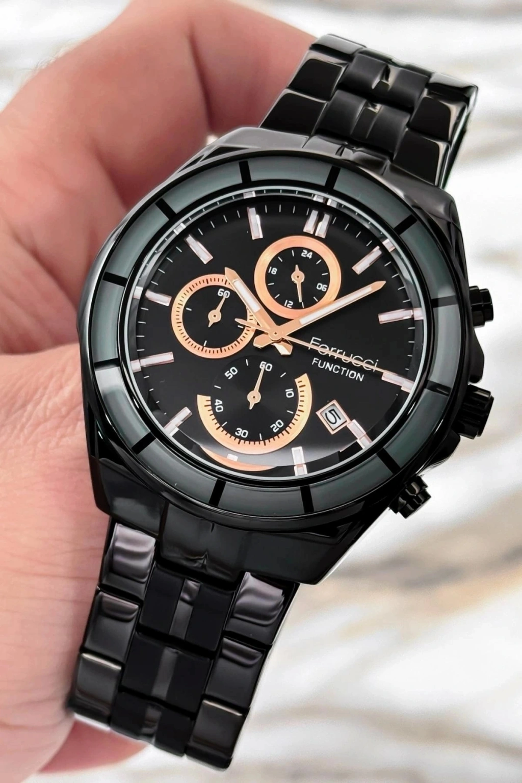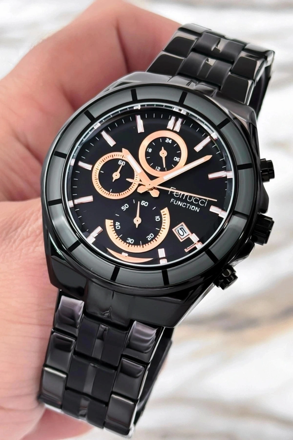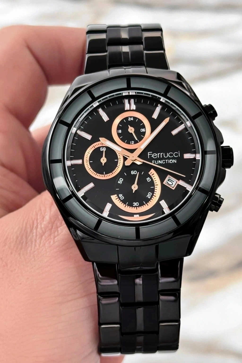Ferrucci Marka Çelik Kordon Tüm Fonksiyonlar Aktif Erkek Kol Saati; Ferrucci marka çelik kordon tüm fonksiyonlar aktif erkek kol saati, şıklığı ve işlevselliği bir araya getiren birinci sınıf bir aksesuardır. Bu saat, kusursuz bir tasarıma sahip olan 44mm çelik kasası ve çelik kordonuyla öne çıkar. Dayanıklı yapısı ve çekici görünümüyle dikkatleri üzerinize çekmek için ideal bir seçenektir. Ayrıca, 3 atm suya dayanıklılık özelliğiyle, günlük aktivitelerinizde rahatlıkla kullanabilirsiniz.; Bu özel saat, sadece zamanı göstermekle kalmaz, aynı zamanda bir dizi fonksiyonu da aktif olarak sunar. Tarih göstergesi ile günlük takvim ihtiyaçlarınızı kolaylıkla karşılayabilirsiniz. sizi önemli randevularınız veya etkinlikleriniz hakkında bilgilendirirken, dünya saati özelliği de farklı zaman dilimlerindeki saatleri takip etmenize yardımcı olur. Bu şekilde, pratik ve işlevsel bir deneyim sunar.; Ferrucci marka çelik kordon tüm fonksiyonlar aktif erkek kol saati, yüksek kalite standartlarına uygun olarak üretilmiştir. Saat, dayanıklı çelik kasa ve çelik kordon ile uzun ömürlü bir kullanım sunar. Aynı zamanda, çelik malzeme kolayca temizlenir ve çizilmelere karşı dirençlidir. Bu sayede saat, uzun süre boyunca günlük kullanıma dayanıklıdır.; Ferrucci marka çelik kordon tüm fonksiyonlar aktif erkek kol saati, orijinal Ferrucci marka bir üründür ve 2 yıl garanti kapsamındadır. Bu garanti, ürününüzde herhangi bir imalat hatası veya işlevsellik sorunu olması durumunda size güvence sağlar.; Tarzınızı yansıtmak ve her anınızda şıklığı hissetmek için Ferrucci marka çelik kordon tüm fonksiyonlar aktif erkek kol saati mükemmel bir seçimdir. Güvenilirlik, işlevsellik ve şıklık beklentilerinizi karşılamak için tasarlanmıştır.;
