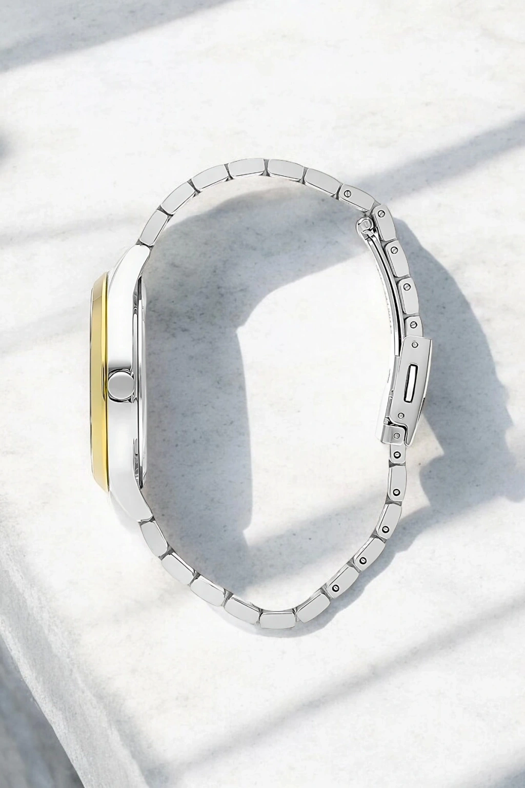 Dayanıklı çelik kasa materyali ile uzun ömürlü kullanım sunar; 2 yıl garanti süresi, satın alma sonrası güven verir ve müşteri memnuniyetini artırır; İki renkli tasarımıyla şıklığı ve modernliği bir arada sunar; Mineral cam tipi sayesinde çizilmelere karşı ekstra koruma sağlar; Quartz mekanizması ile zamanı hassas ve doğru bir şekilde takip eder; Çelik kordon materyali, hem dayanıklılığı hem de konforlu bir kullanım sunar; Düz cam şekli, saatin zarif ve sade görünümünü tamamlar; 3 atm su geçirmezlik özelliği, günlük su sıçramalarına karşı koruma sağlar; Takvim özelliği ile tarih bilgisine kolayca erişilebilir;