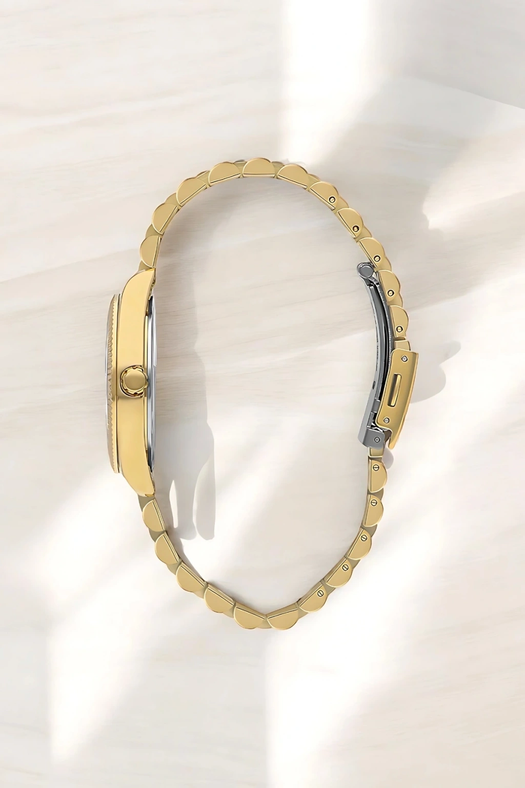 Gold Renk Çelik Kordon&kasa Kadın Kol Saati Bileklik Hediyeli Sdlc008
