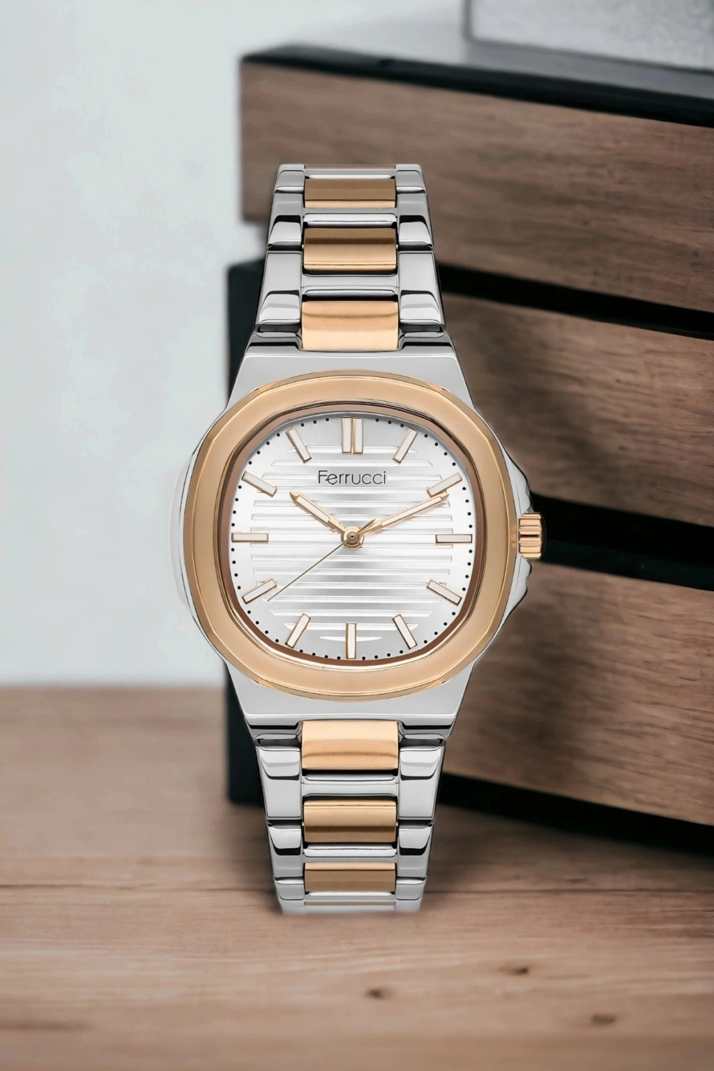 Bu zarif ve modern tasarımlı Ferrucci kadın kol saati, hem günlük kullanım hem de özel anlar için mükemmel bir aksesuar sunuyor. Saatin çelik kordonu, dayanıklılığı ve şıklığı bir arada sunarak her tarza uyum sağlayacak bir görünüm sunar. Çelik kasa, saatin dayanıklılığını arttırırken, aynı zamanda klasik ve zamansız bir estetik sunar. Saat, çizilmeye dayanıklı mineral cam ile donatılmıştır. Bu sayede günlük kullanımda karşılaşabileceğiniz çarpmalar ve sürtünmelere karşı ekstra koruma sağlar. Ayrıca, 3 ATM suya dayanıklılık özelliği, el yıkama veya yağmur gibi durumlarda saatinizi güvende tutar, ancak yüzme veya dalış için uygun değildir. Saat, Ferrucci'nin kalite ve güvenilirliğini temsil eden orijinal 2 yıl garantisi ile birlikte gelir. Bu garanti, saatte meydana gelebilecek herhangi bir üretim hatasına karşı sizi korur ve satın alma sonrası huzurunuzu sağlar. Elegant ve rafine tasarımı, yüksek kaliteli malzemeleri ve güvenilir işlevselliği ile bu Ferrucci kadın kol saati, hem günlük kullanımınızda hem de özel anlarınızda size eşlik edecek mükemmel bir seçimdir." Bu açıklama, saatin ana özelliklerini ve avantajlarını vurgulayarak, potansiyel alıcıların ilgisini çekecek şekilde tasarlanmıştır. Zarif ve Modern Tasarım: Saat, hem günlük kullanım hem de özel anlar için uygun, zarif ve modern bir tasarıma sahiptir. ; Çelik Kordon ve Kasa: Dayanıklı çelik kordon ve kasa, saate şıklık ve sağlamlık kazandırırken, her türlü giyim tarzına uyum sağlar. ; Çizilmeye Dayanıklı Mineral Cam: Günlük kullanımda meydana gelebilecek çarpmalar ve sürtünmelere karşı ek koruma sağlayan mineral cam. ; 3 ATM Suya Dayanıklılık: Saat, el yıkama veya yağmur gibi durumlar için suya dayanıklıdır ancak yüzme veya dalış için uygun değildir. ; Orijinal 2 Yıl Garanti: Ferrucci tarafından sunulan 2 yıl garantisi, üretim hatalarına karşı koruma sağlar. ; Elegant ve Rafine Tasarım: Saatin yüksek kaliteli malzemeleri ve işlevselliği, günlük kullanımda ve özel anlarda ideal bir aksesuar olmasını sağlar. ;
