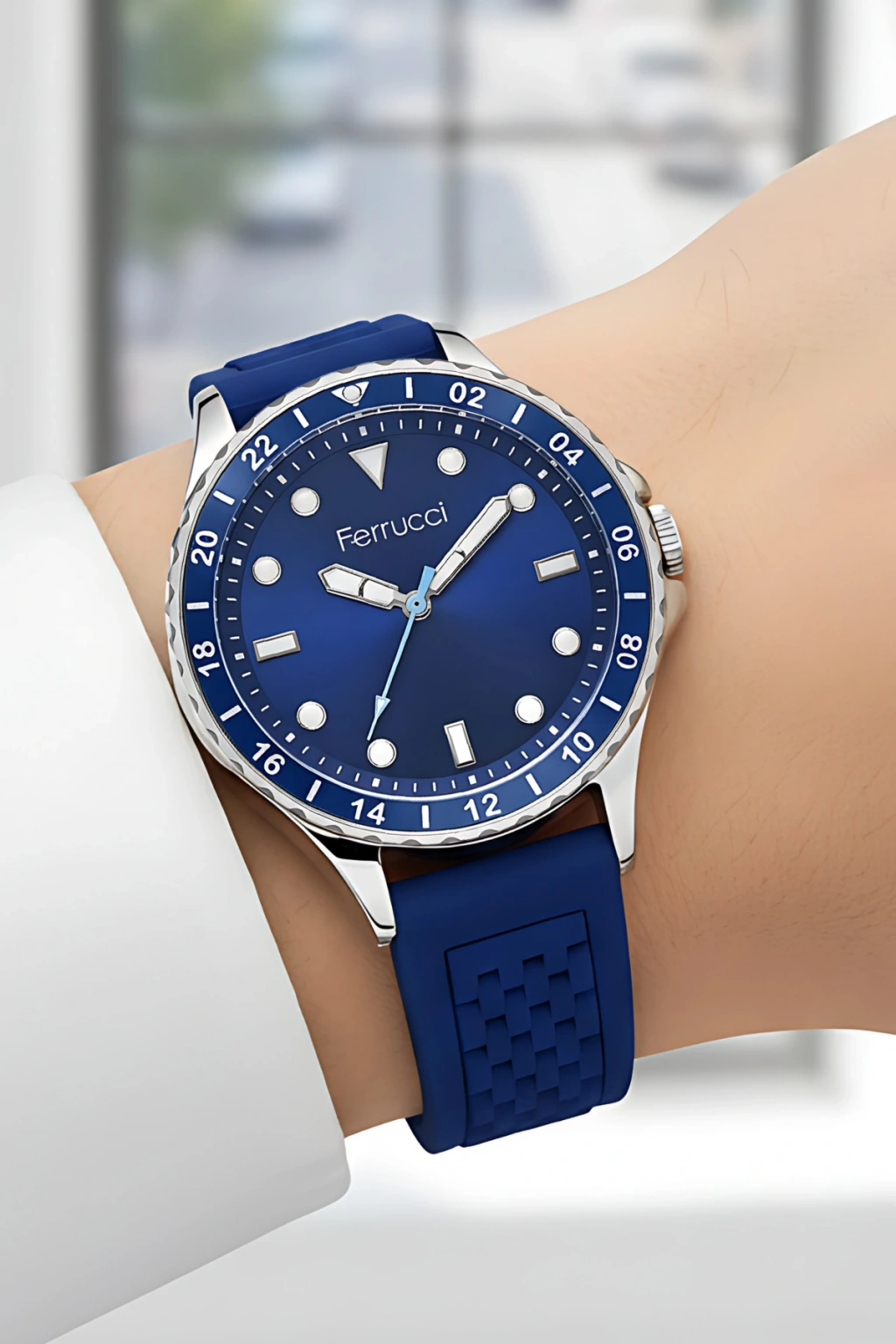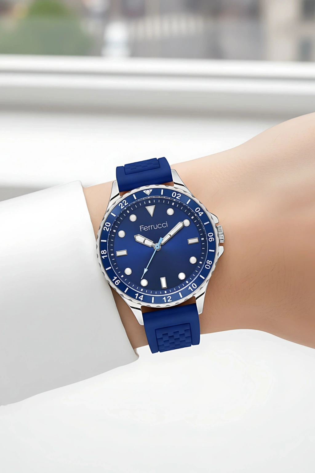 Ferrucci Lacivert Silikon Kordon Gümüş Çelik Kasa Kadın Kol Saati Fc 03282s.02 Bileklik Sdfer096